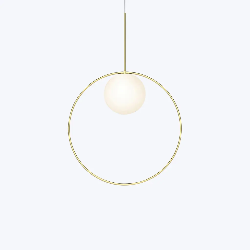 Taking its inspiration from pendant jewelry, Pablo’s Bola Halo LED Pendant features a chromated ring that balances delicately over an elegant opal glass sphere. This graceful pendant is available in three exquisite finishes and sizes. Choose from Brass, Chrome, and Rose Gold rings. For artistic effect, mix metals and sizes.