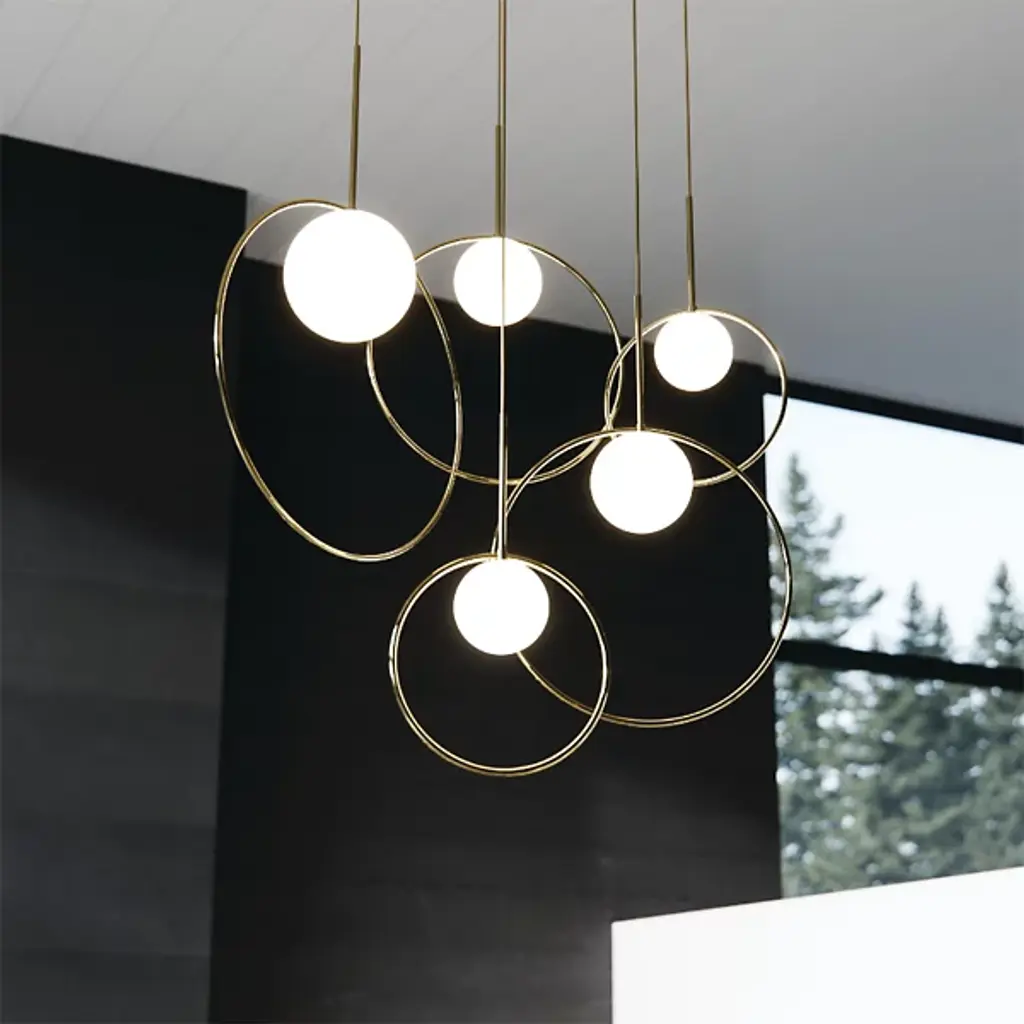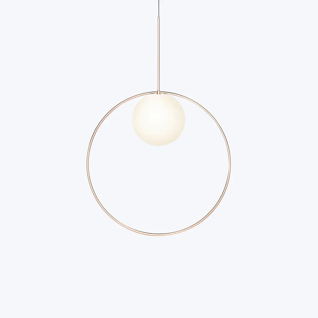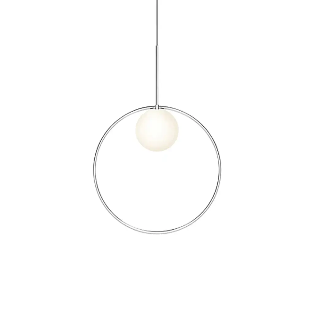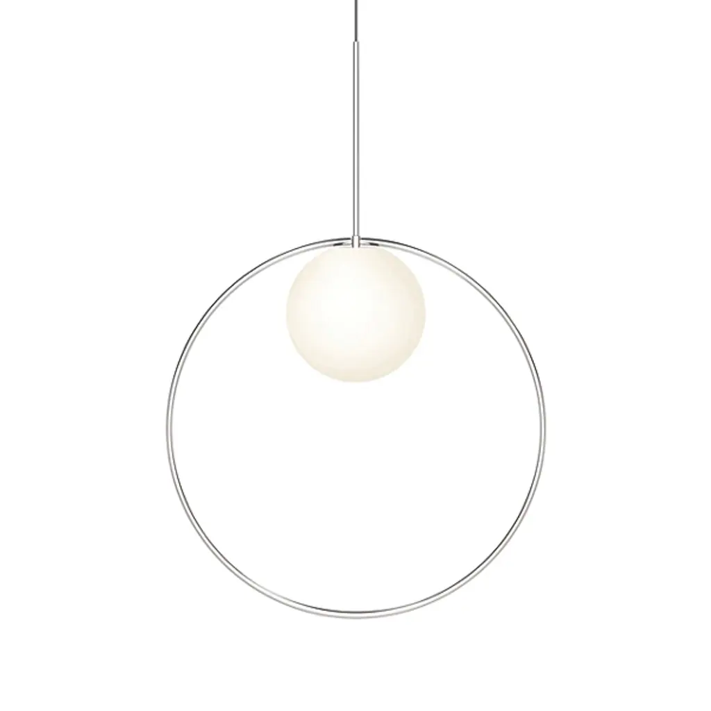 Cast a cosmic illumination around your home with the Bola Bola Halo LED Pendant by Pablo Designs. Founded in 1993 by Pablo Pardo, the studio produces designs uncompromisingly devoted to utility and simplicity. The Halo drops a metal ring suspended from a short stem and cable attachment, holding LED lamping beneath a globe of opal glass at the top of the ring. This contemporary fixture is best suspended in larger living spaces as it provides a warm glow all around.