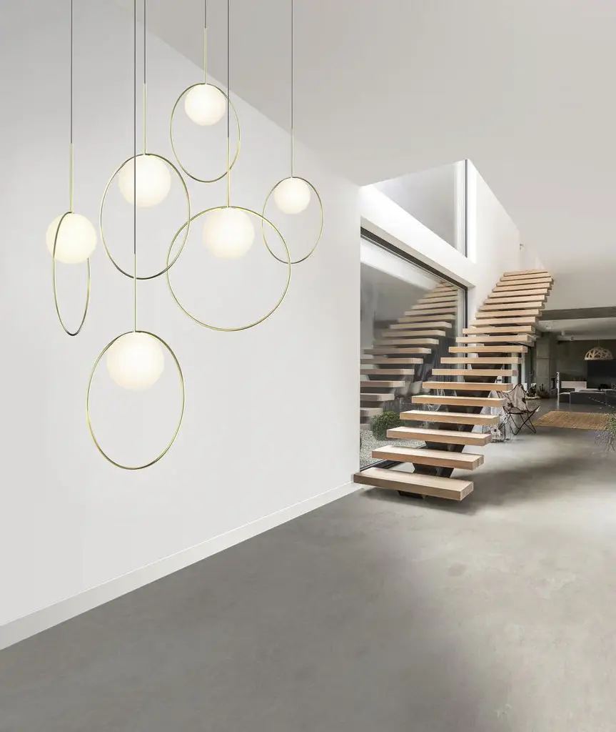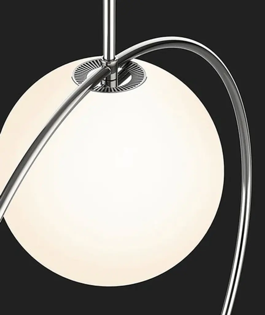 Taking its inspiration from pendant jewelry, Bola Halo is a uniquely expressive pendant light featuring a chromated ring that balances delicately over its elegant opal glass shade while allowing its surroundings to shine through. Available in 3 distinct sizes and 3 exquisitely polished stainless steel ring finishes of chrome, brass, and rose gold.