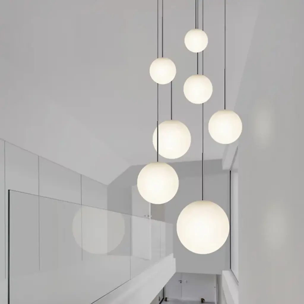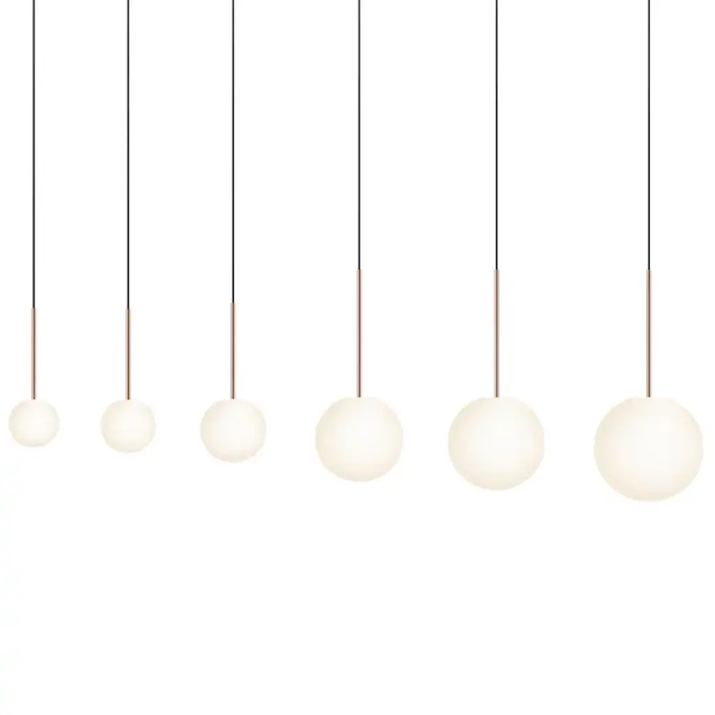 The Bola Sphere LED Multi-Light Pendant by Pablo Designs takes the most elemental aspect of the Bola series and gathers it into a customizable arrangement for a stunning visual display. Joined by a low-profile, rounded canopy, a series of pendants suspend opal glass globes that emit a softly diffused light. Integrated LED lamping and thermal management system allows the fixture to withstand the test of time. Slender, stainless-steel posts adorn the top of each opaline shade, adding sleekness to the minimal silhouette.