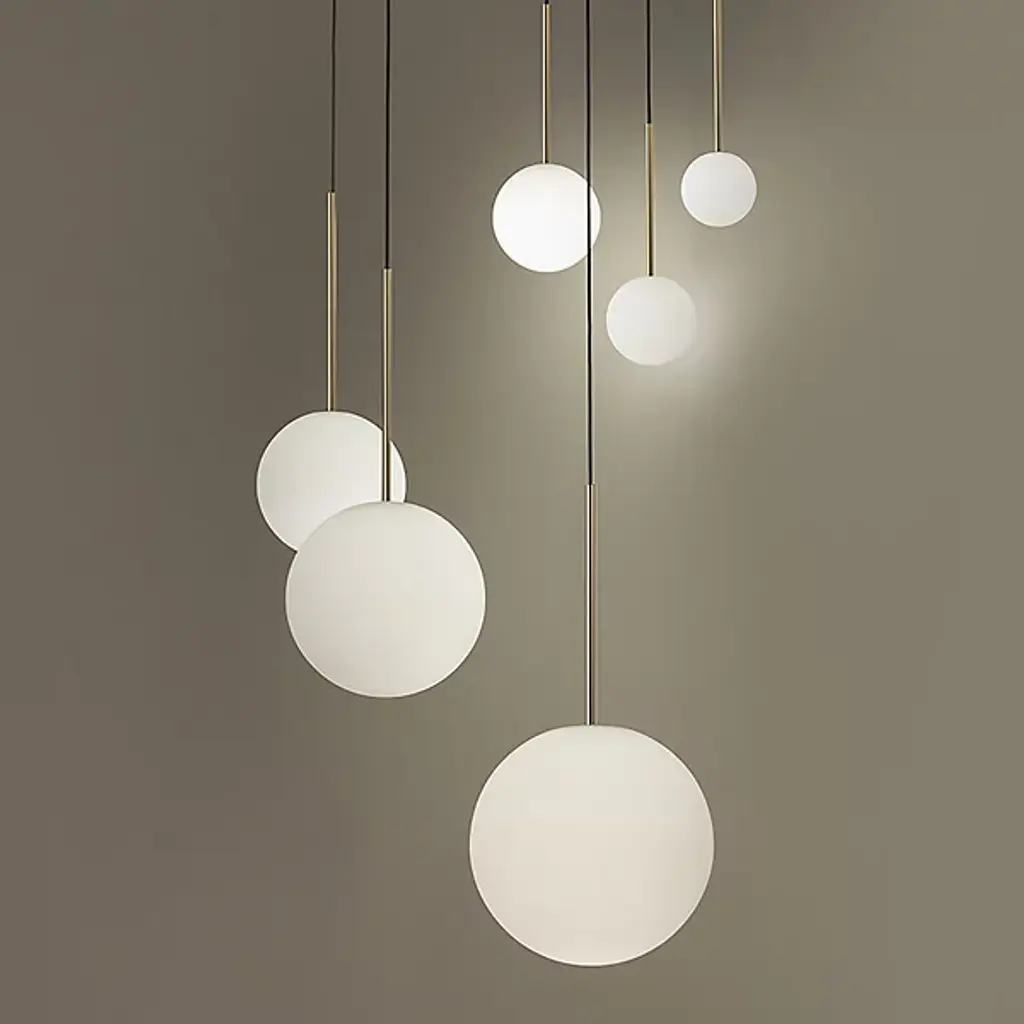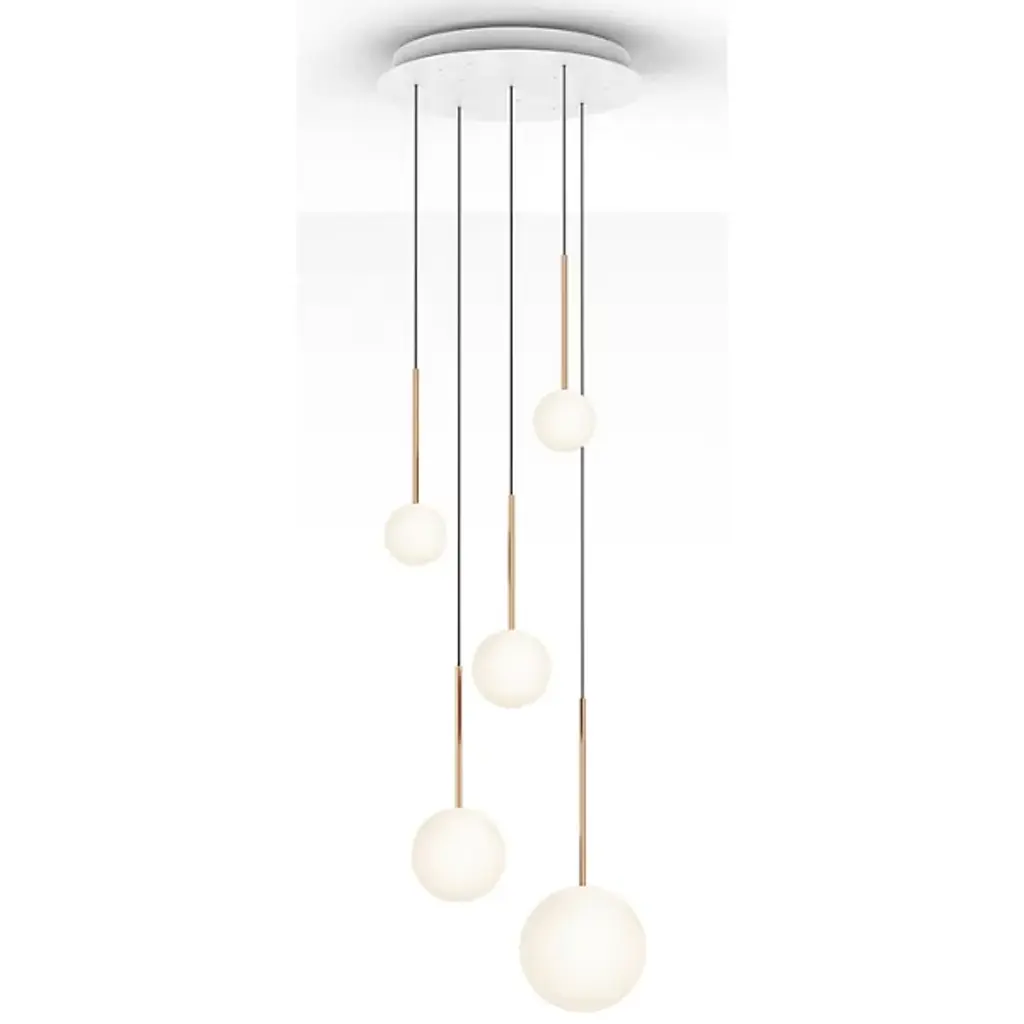 The Bola Sphere LED Multi-Light Pendant by Pablo Designs takes the most elemental aspect of the Bola series and gathers it into a customizable arrangement for a stunning visual display. Joined by a low-profile, rounded canopy, a series of pendants suspend opal glass globes that emit a softly diffused light. Integrated LED lamping and thermal management system allows the fixture to withstand the test of time. Slender, stainless-steel posts adorn the top of each opaline shade, adding sleekness to the minimal silhouette.