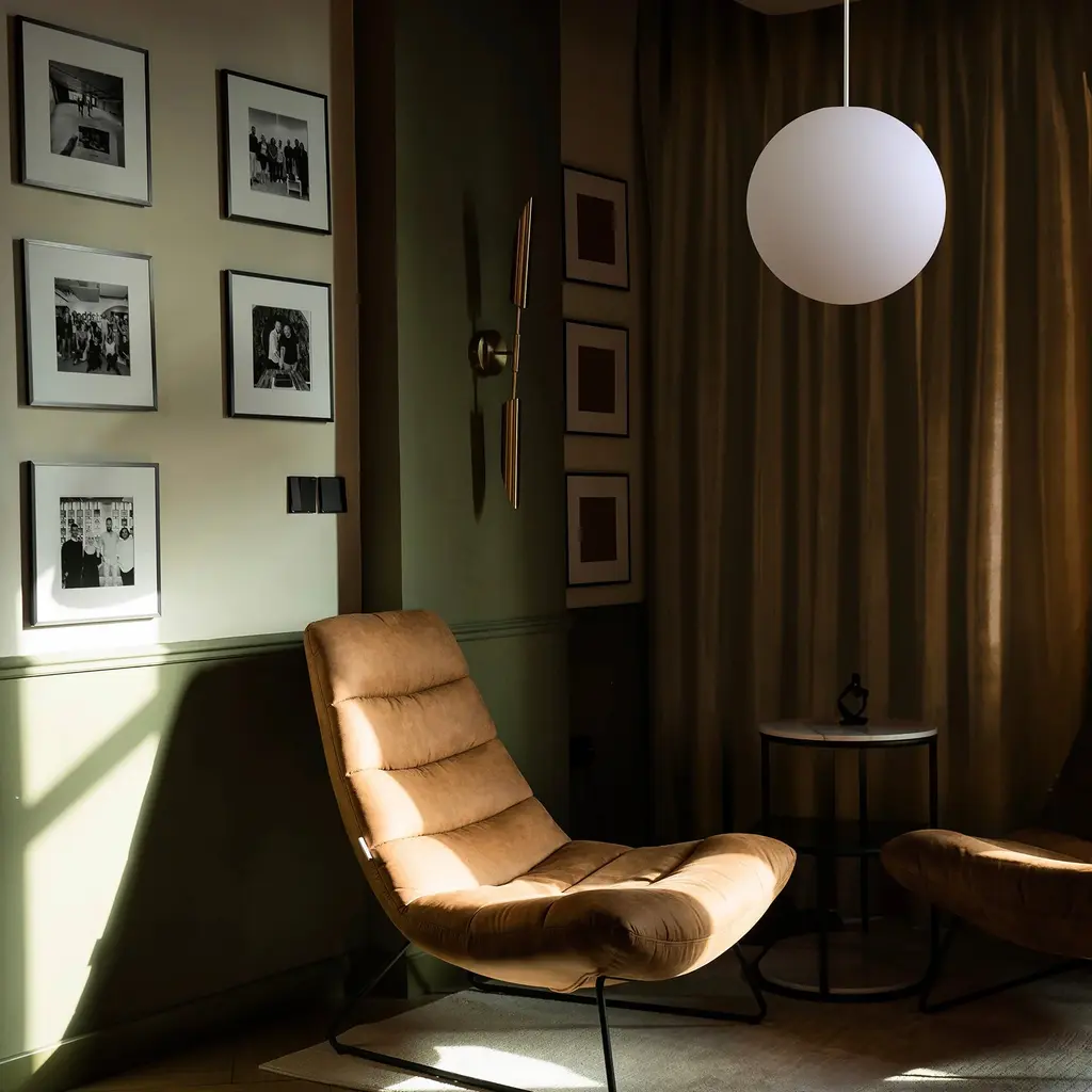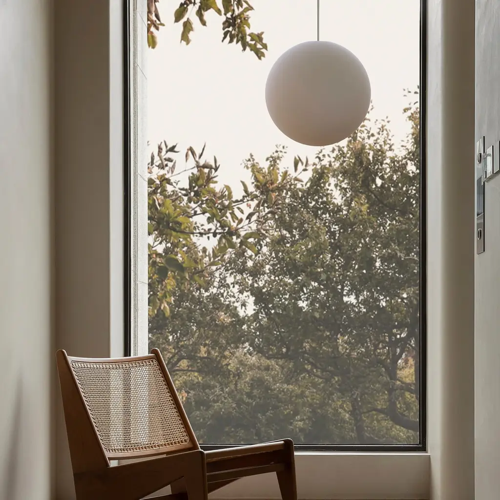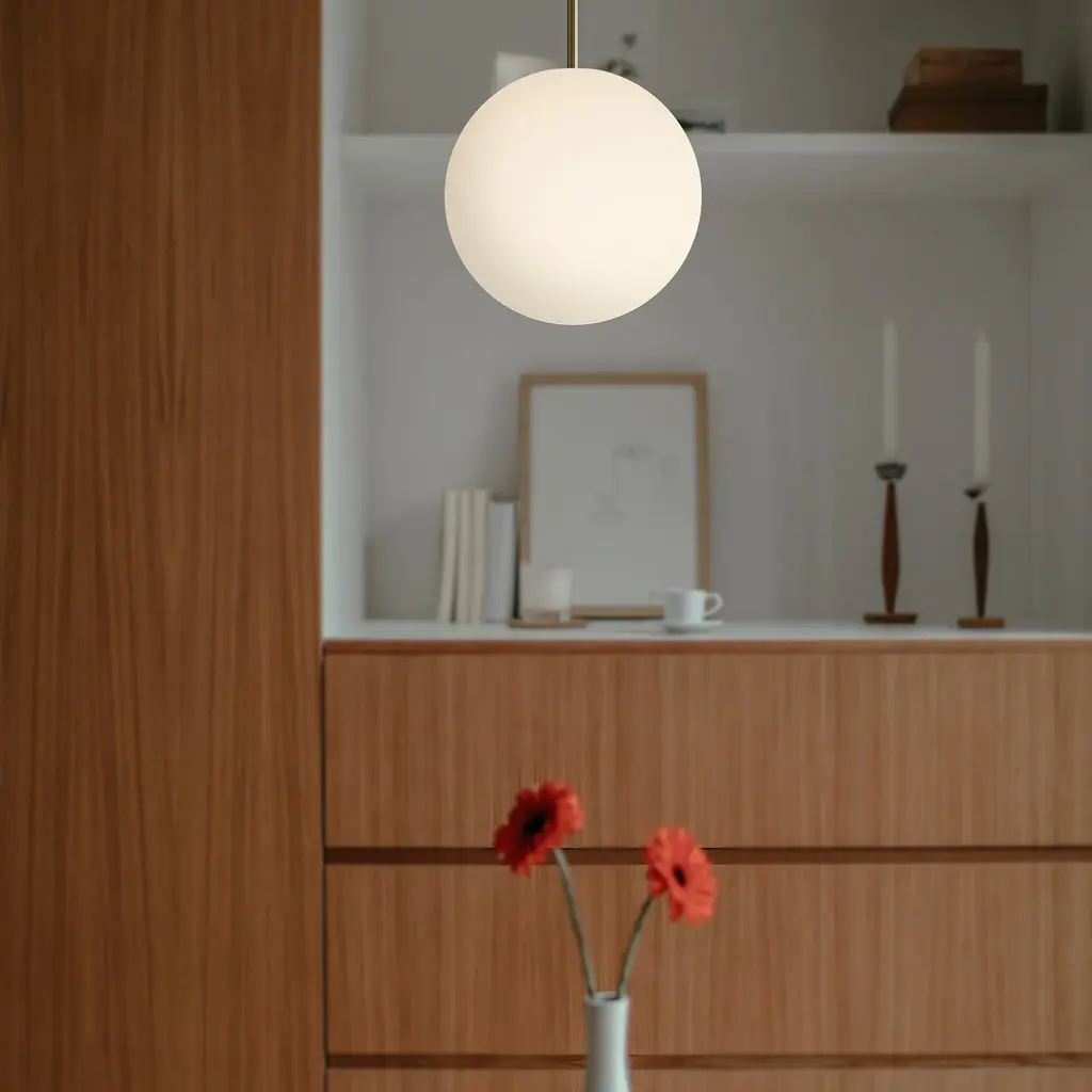 Pablo Designs' sleek pendant—with its atmospheric globe suspended by a gleaming post—encompasses more tech than meets the eye. Bola Sphere's integrated LED light source is optimized to offer ultra-efficient performance that can last a lifetime and it’s fully dimmable. Available in 6 sizes, the blown-glass opal shade is paired with a stainless-steel post in chrome, brass or rose-gold finishes.