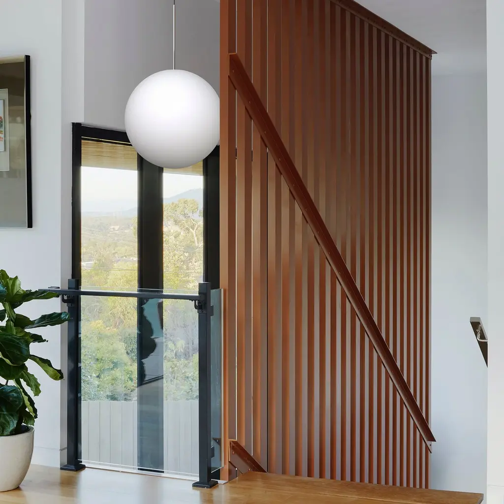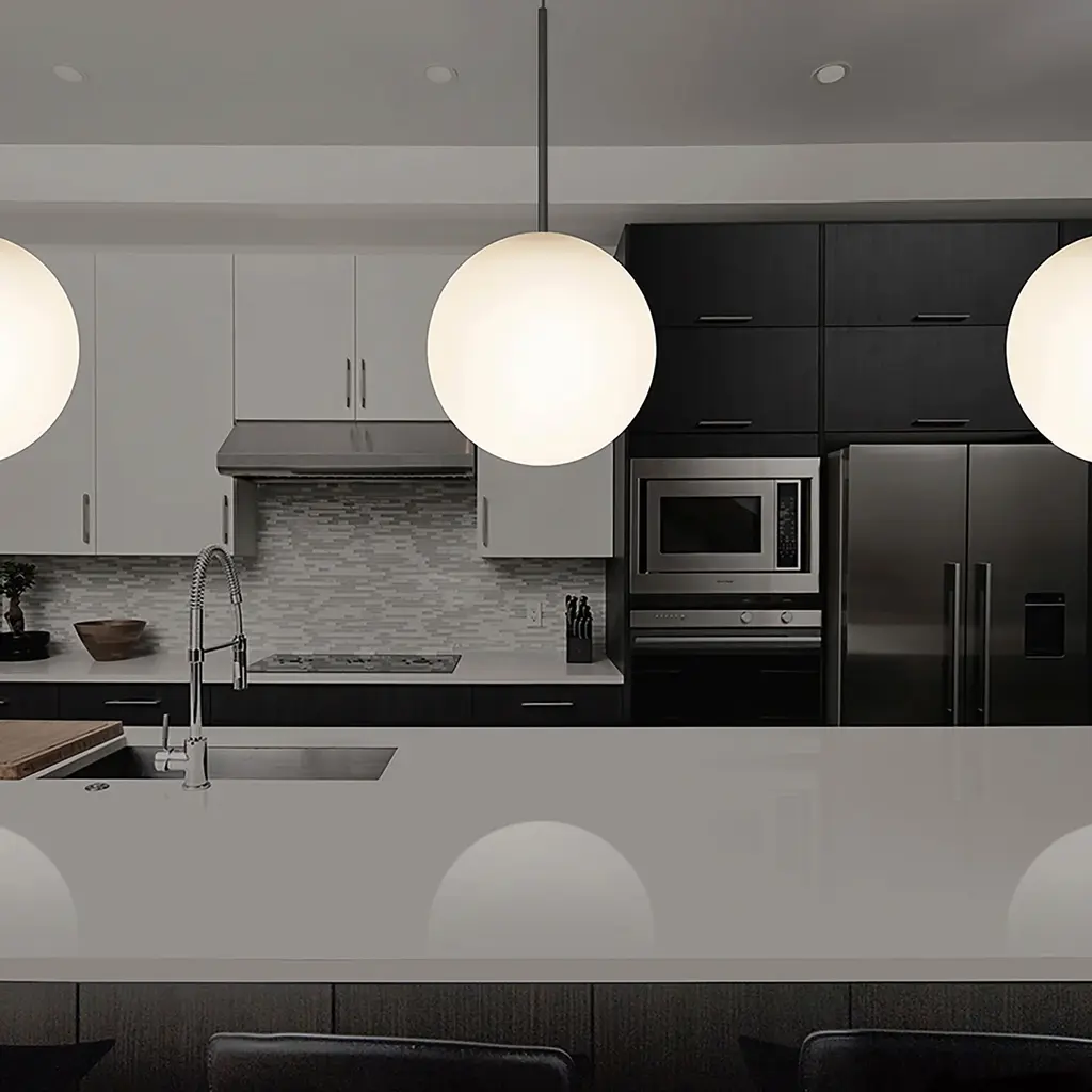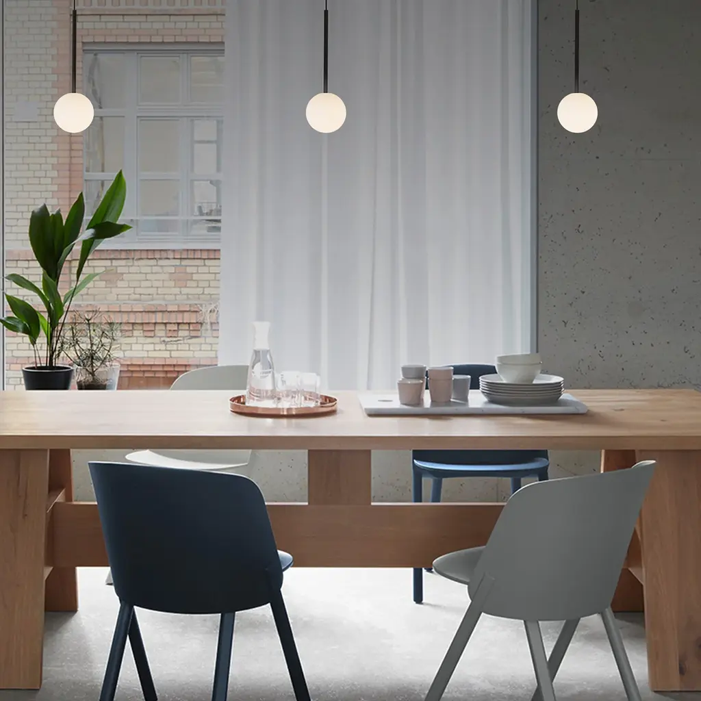 Pablo Designs' sleek pendant—with its atmospheric globe suspended by a gleaming post—encompasses more tech than meets the eye. Bola Sphere's integrated LED light source is optimized to offer ultra-efficient performance that can last a lifetime and it’s fully dimmable. Available in 6 sizes, the blown-glass opal shade is paired with a stainless-steel post in chrome, brass or rose-gold finishes.