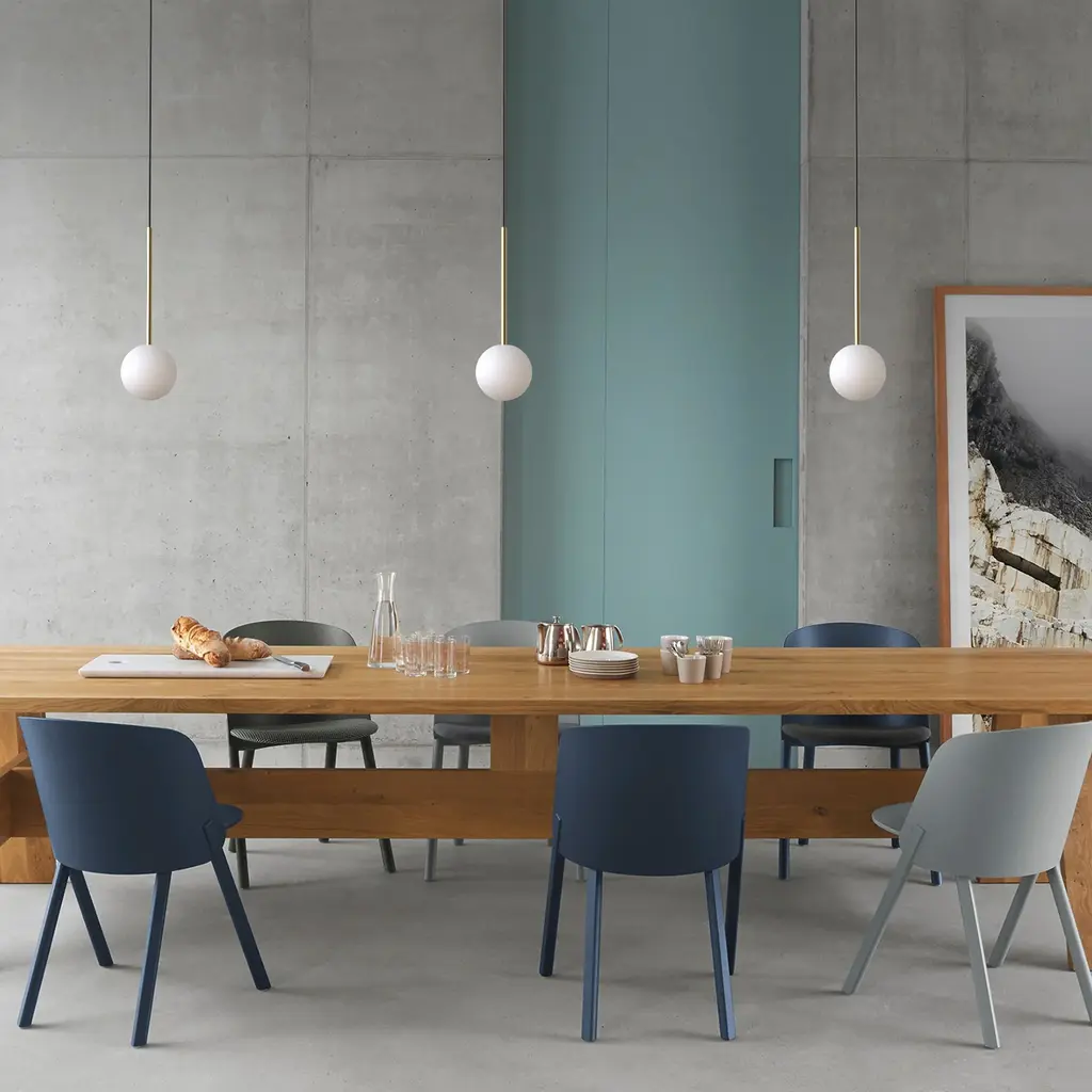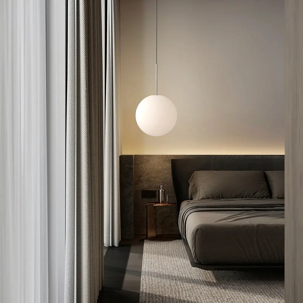 Pablo Designs' sleek pendant—with its atmospheric globe suspended by a gleaming post—encompasses more tech than meets the eye. Bola Sphere's integrated LED light source is optimized to offer ultra-efficient performance that can last a lifetime and it’s fully dimmable. Available in 6 sizes, the blown-glass opal shade is paired with a stainless-steel post in chrome, brass or rose-gold finishes.