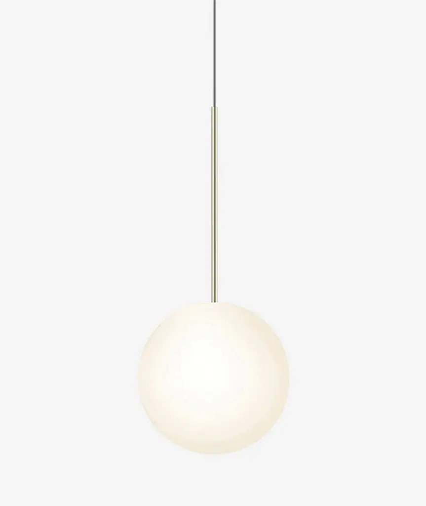 The Bola Sphere pendant is the basic foundation of the Bola Collection, featuring an elemental interplay between post and sphere. Its seductive opal blown glass shade is available 6 distinct sizes, paired with a stainless steel post with mating canopies. Bola Sphere is also available in exquisite Chandelier groupings that allow mixing of globe sizes for stunning displays in any residential, contract or hospitality setting, alike.