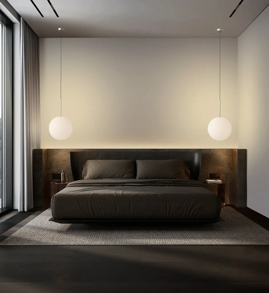 The Bola Sphere pendant is the basic foundation of the Bola Collection, featuring an elemental interplay between post and sphere. Its seductive opal blown glass shade is available 6 distinct sizes, paired with a stainless steel post with mating canopies. Bola Sphere is also available in exquisite Chandelier groupings that allow mixing of globe sizes for stunning displays in any residential, contract or hospitality setting, alike.