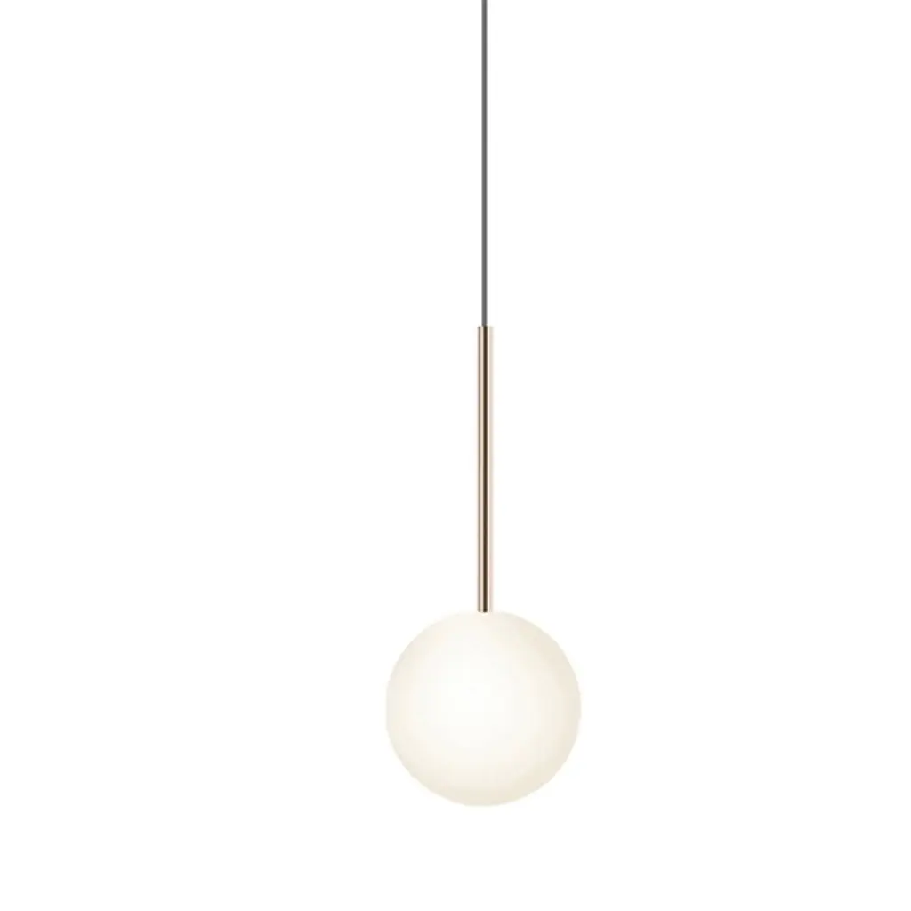 The Bola Sphere pendant is the basic foundation of the Bola Collection, featuring an elemental interplay between post and sphere. Its seductive opal blown glass shade is available 6 distinct sizes, paired with a stainless steel post with mating canopies. Bola Sphere is also available in exquisite Chandelier groupings that allow mixing of globe sizes for stunning displays in any residential, contract or hospitality setting, alike.