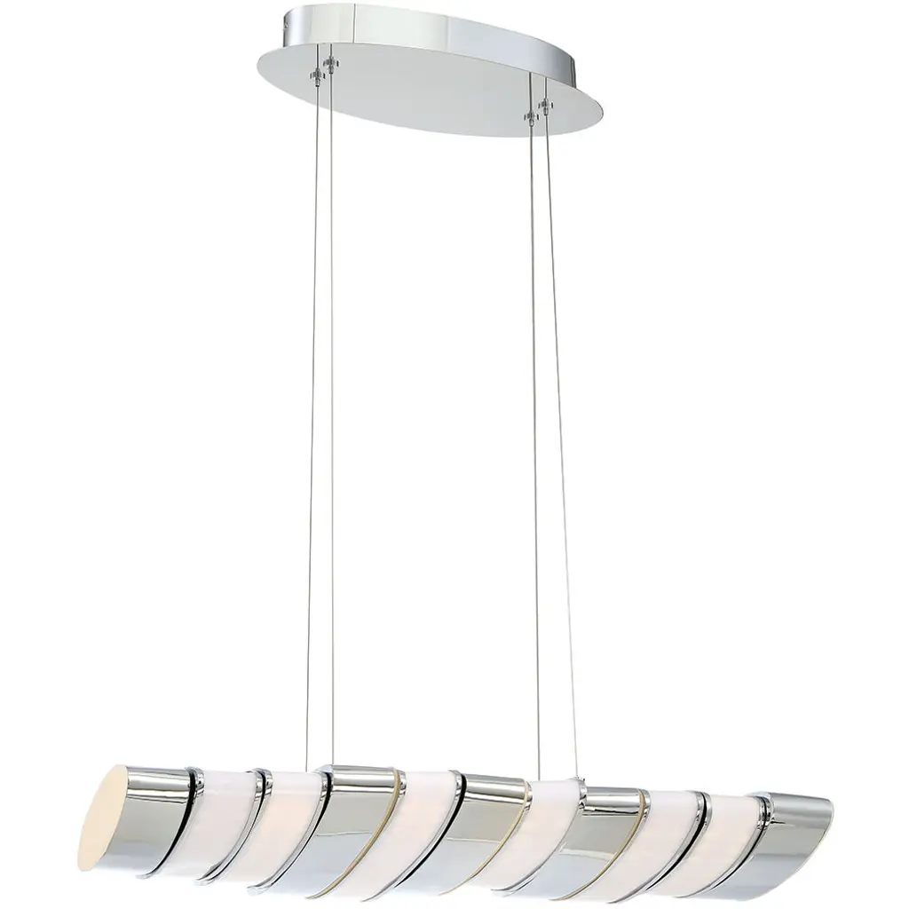 LED pendant featuring illuminated cylinders formed by handcrafted glass set within a silhouette, beautifully lit from within, spanning space vertically or horizontally. Shown in our standard Silver Leaf finish with Bahama Sand opaline white glass captu