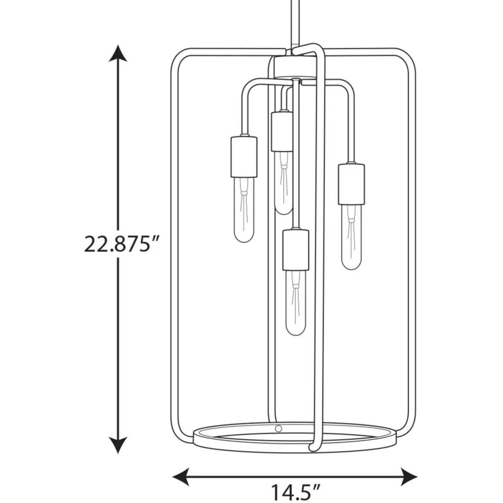 The Bonn Collection Four-Light Black Pendant personifies an industrial vintage vibe sure to create an unforgettable lighting experience. Smooth metal bars coated in a beautiful matte black finish curve to form a simple, open-cage light fixture. From the bottom of the sleek center stem, light bases appear to gracefully drip down and give an extra touch of refined visual interest with their varying lengths.