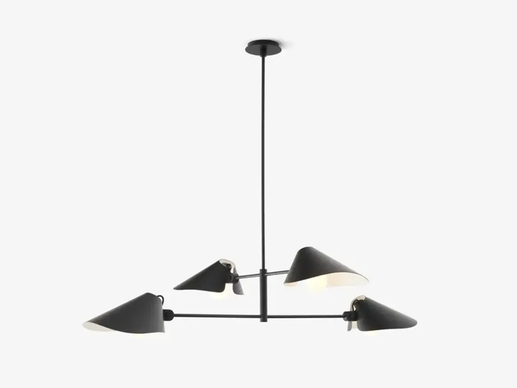 Renowned for their ability to extract elegance from simplicity, design studio Space Copenhagen created Bonnet – a collection that celebrates the inherent beauty of light. Crafted with meticulous attention to detail, the Bonnet chandelier offers three stem lengths that accentuate the outline of the lamp, exuding an aura of effortlessness and grace. The curved shades envelope the light source, which frame and guide the diffused light with precision.Voltage220-240V – 50HzLight Source4x E27 max 25WVariantsBlackBlack & Bronzed