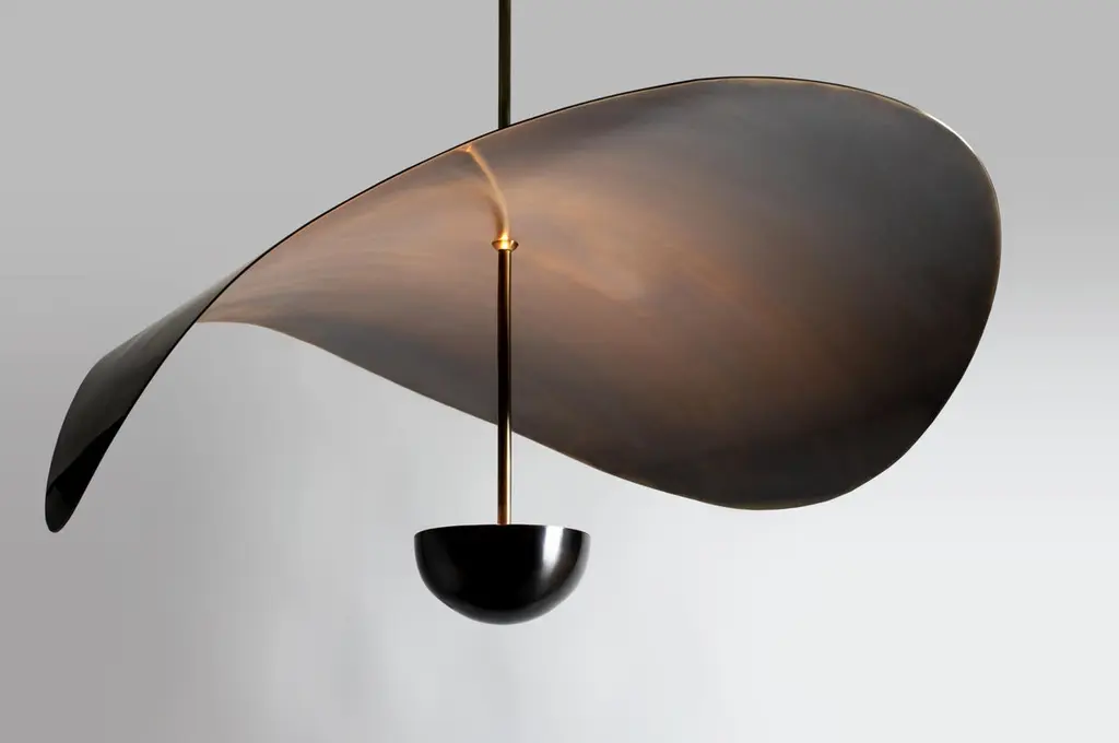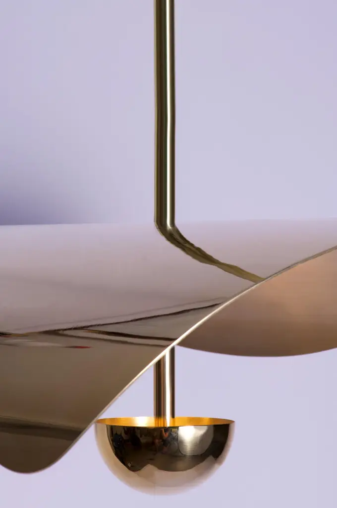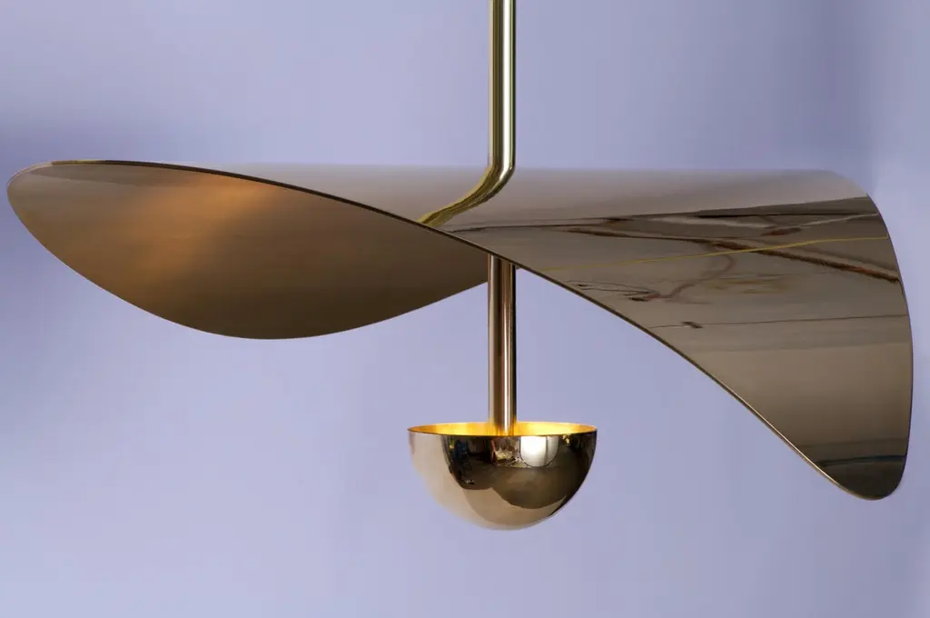 The Bonnie range is designed around the stylized form of a Saffron flower, known around the world for its valuable beauty, fragrance and essence.Each organic flower-like form is stamped, moulded and polished by hand from solid brass or stainless steel (depending on the required finish). They reflect a hidden LED light source, resulting in a warm and decorative glow. As this piece is handmade to order it is fully customizable in size, scale, hanging and arrangement on request. The given height excludes the stem lengths which are made to order.