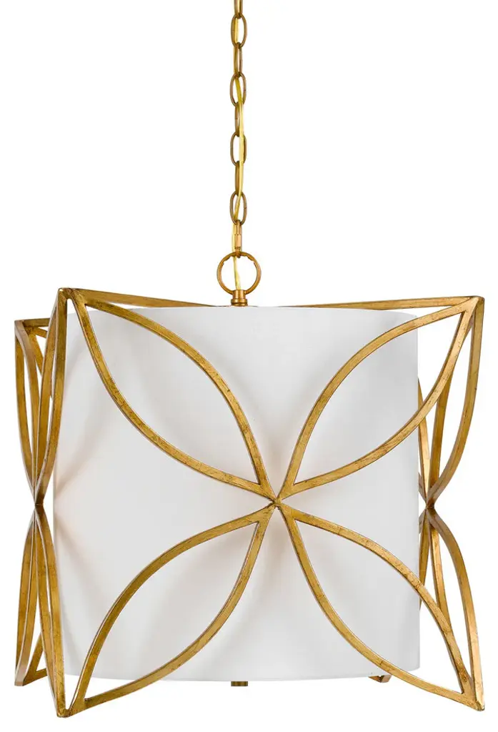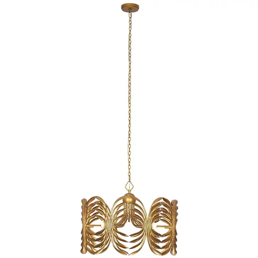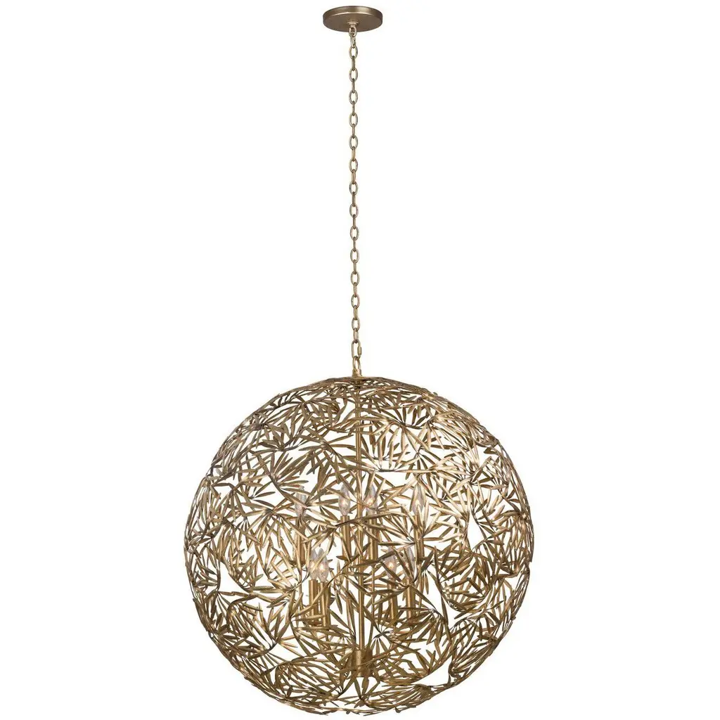 Transform open spaces with the Botanica Pendant from Kalco Lighting. This enchanting fixture artfully merges organic inspiration with contemporary design, featuring intricate repeating patterns that create mesmerizing contrasting displays of light and shadow. The warm gold finish adds luster to its airy presence, while the sophisticated steel construction creates an almost weightless appearance. Viewed from new angles, it takes on different characteristics, becoming piece a focal point of any room it is placed in.