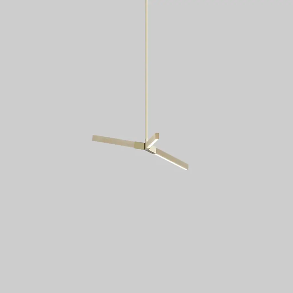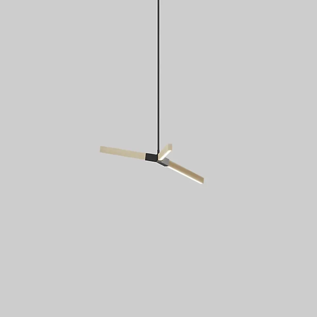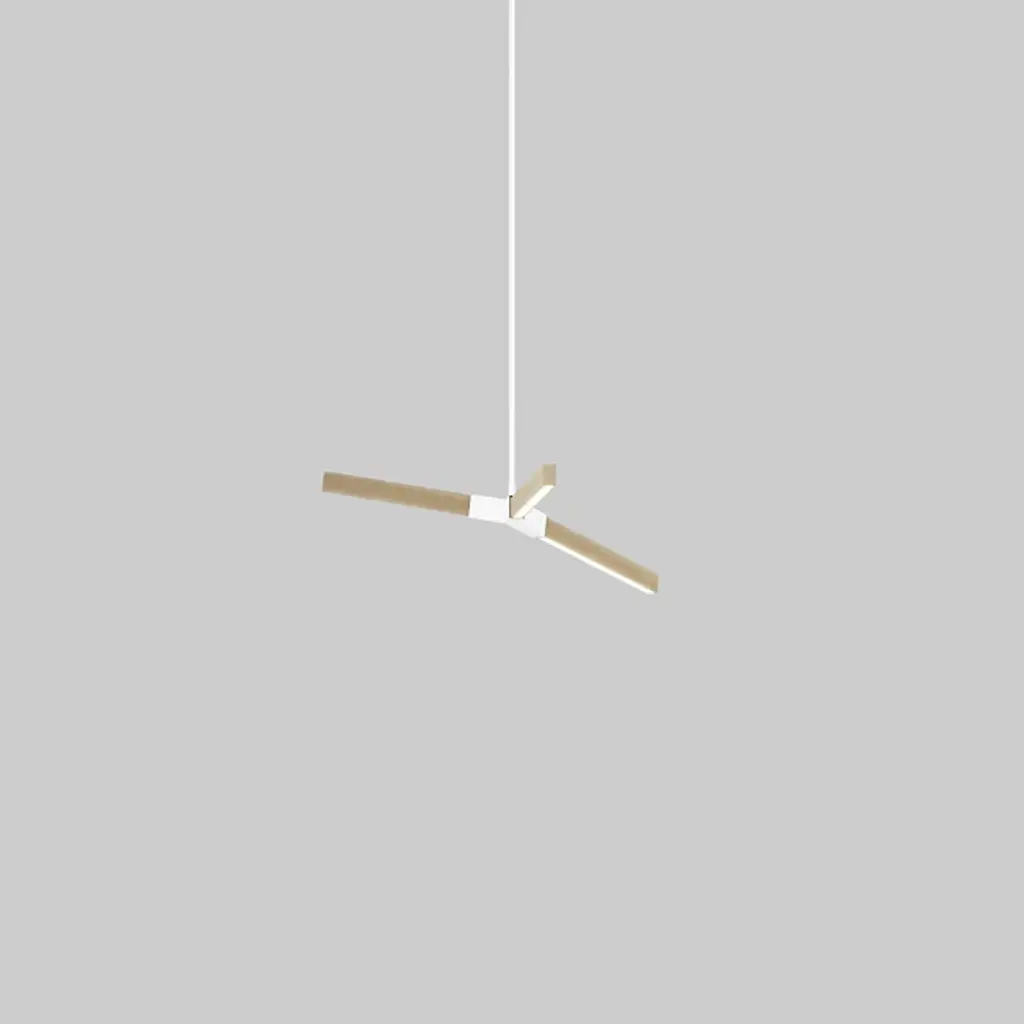 A minimalist design created as the ultimate complementary piece for dining and living spaces through its modular construction and utterly sleek form-factor. The Bough Single Pendant from Stickbulb streamlines its materials to highlight the elegance in its wood and versatility in its light. A trio of precision-cut wooden forms are tethered together with a y-shaped steel connector, a ball swivel inside allows for the segments to angle in a dynamic formation. The side of the wood with the strip of LEDs can be configured up or down to create a truly personalized down or upplight.