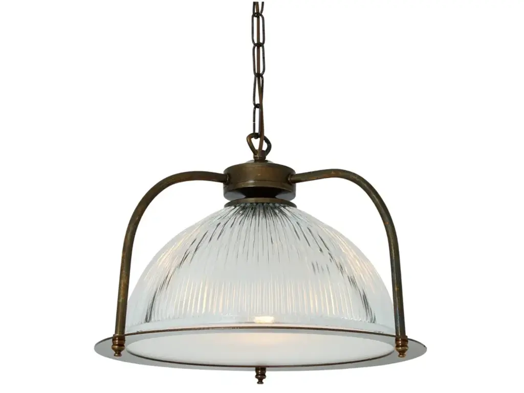 The Bousta Holophane Pendant with diffuser offers plenty of task lighting for detailed work.Material Brass | GlassFlex/Chain Length 100cm | 40”Weight 2.650kgMax Wattage 40wVoltage 220/240vLampholder E27 | Plastic | ES | Edison ScrewIP Rating IP20Ceiling Attachment MLROSE05Glass Code GL025