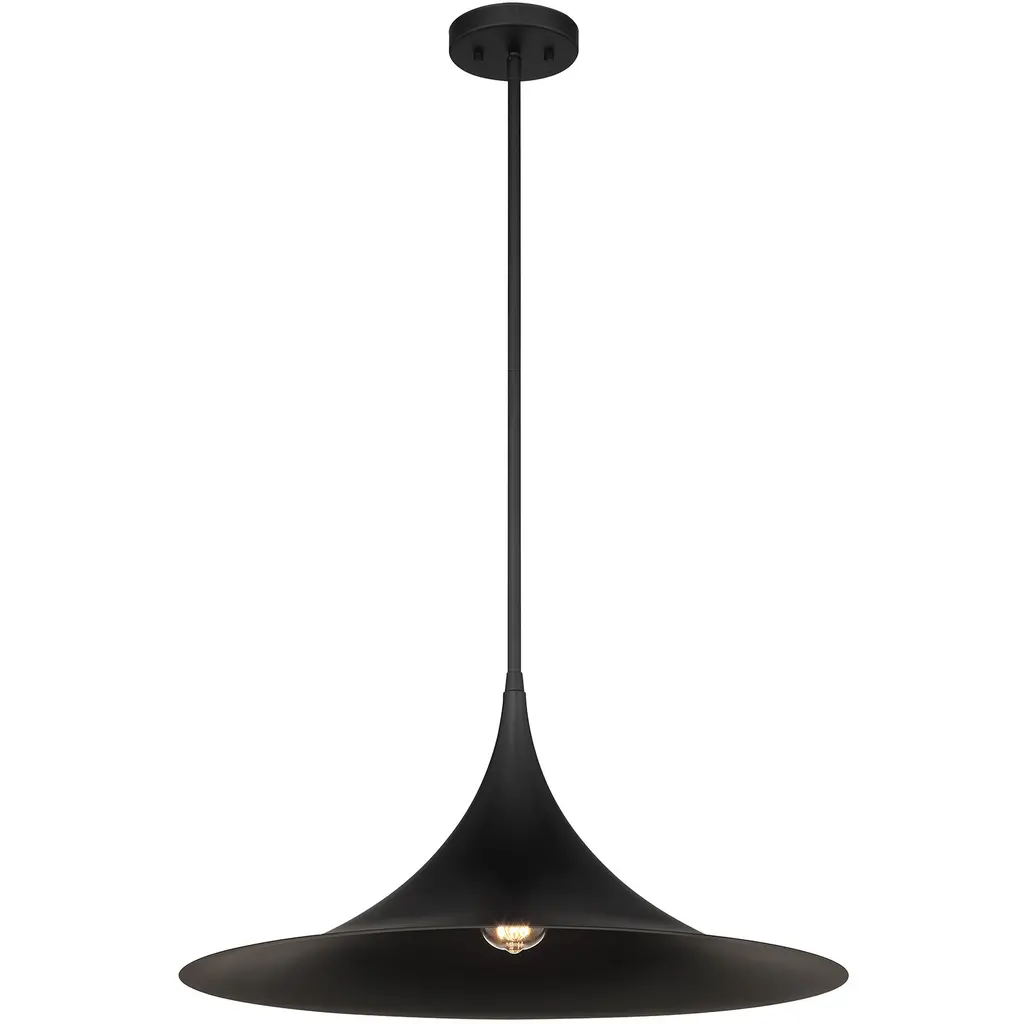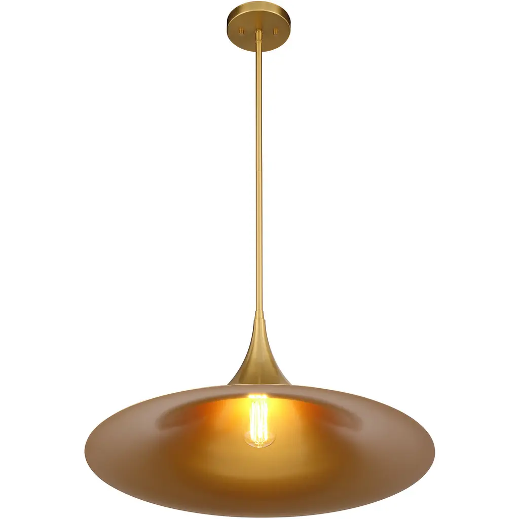 This Savoy House Bowdin 1-light pendant is beautiful in its simplicity. Its shade curves outward, bringing you a highly dramatic style that is perfect alone or in groupings. Finished in Warm Brass. At 24" wide, with an adjustable height ranging from 11.25" to 65.25", it's great for large-scale spaces. Comes with four 12" downrods and one 6" downrod. Uses one standard size bulb of up to 60 watts. The bulb is not included.