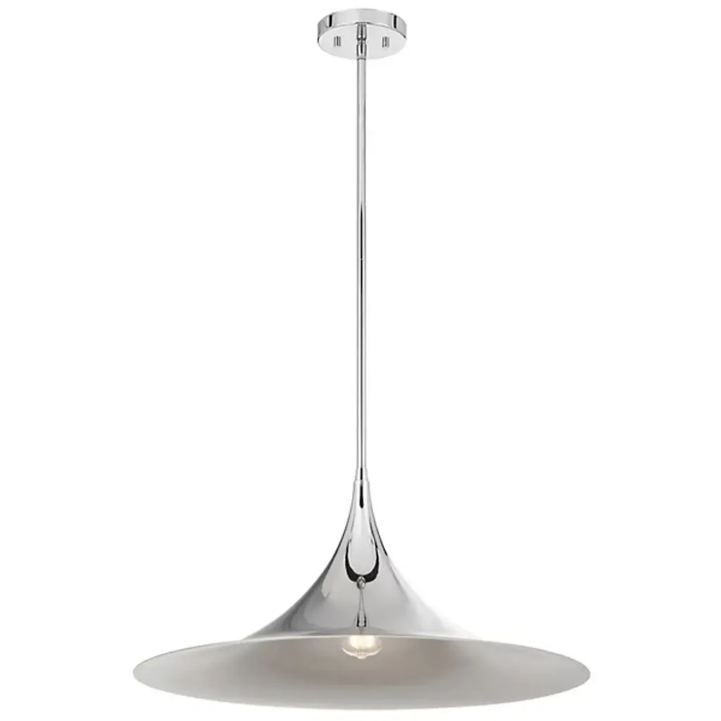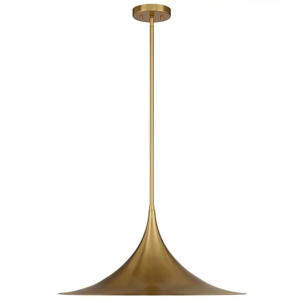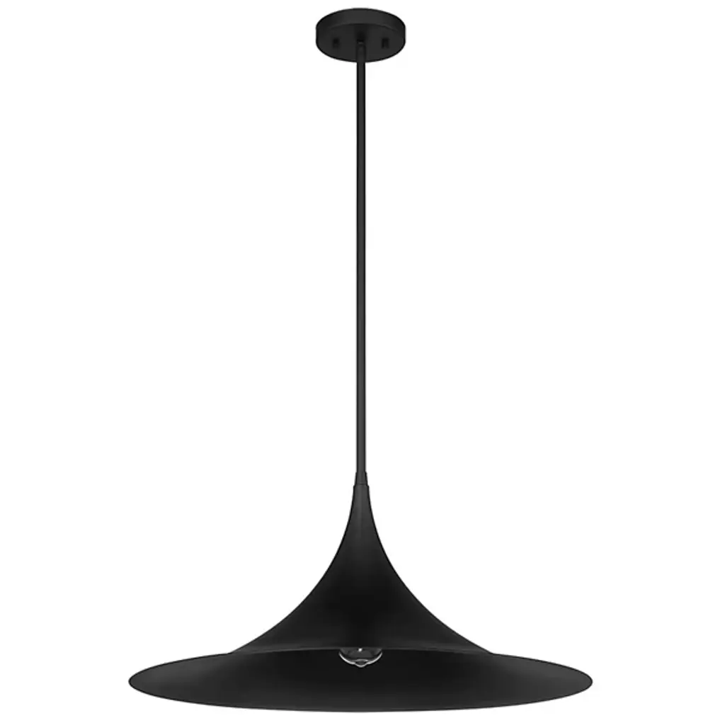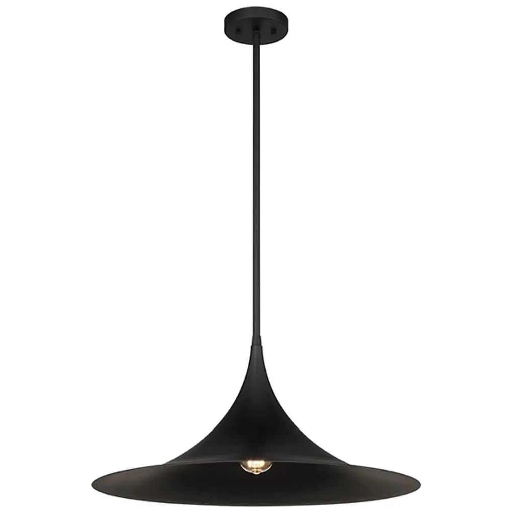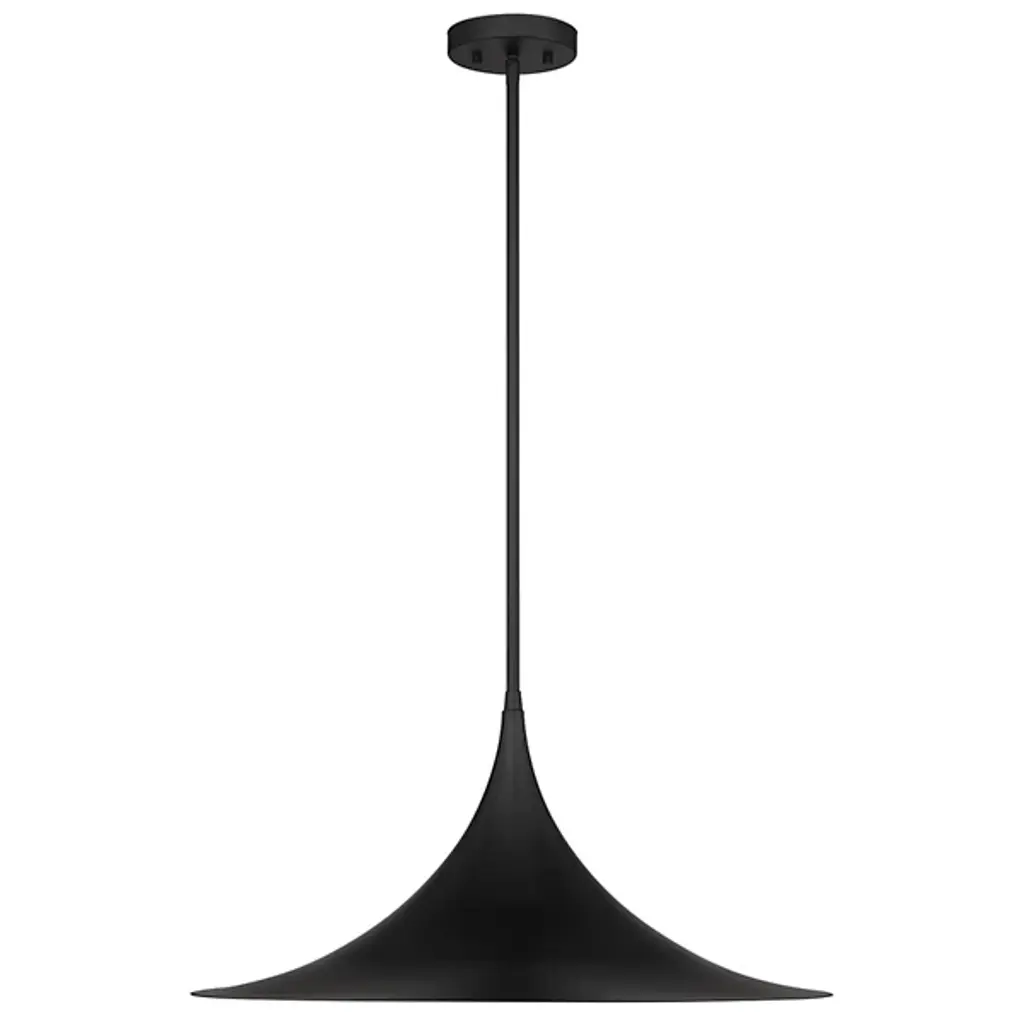 The Bowdin Pendant from Savoy House’s elegant design creates an appealing Transitional style. This one-light pendant features a gracefully curved shade that extends outward around inset lighting, offering a welcome touch of dramatic flair. The trumpet-style design of the shade makes a bold statement whether showcased alone or grouped as part of an artistic arrangement. A slender fixture made from high-quality metal, this pendant is a versatile addition, splashing out a pool of reflected radiance below the fixture.