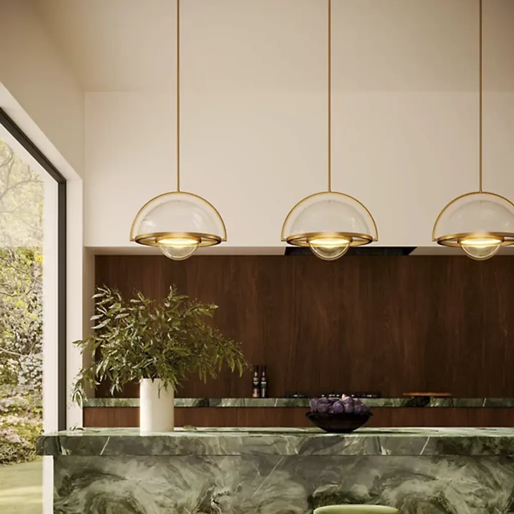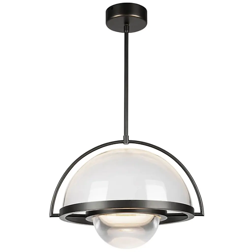 The Bowery LED Pendant from Kuzco Lighting blends modern whimsy with timeless elegance, creating a stunning lighting centerpiece. Its unique design features clear glass shades on both the top and bottom, encasing integrated LED lights within a beautifully crafted vintage frame. A contemporary take on the classic mid-century dome pendant, it brings a sophisticated yet playful charm to any room. Perfect for adding character and warmth, it offers a seamless fusion of vintage allure and modern functionality, elevating your décor.
