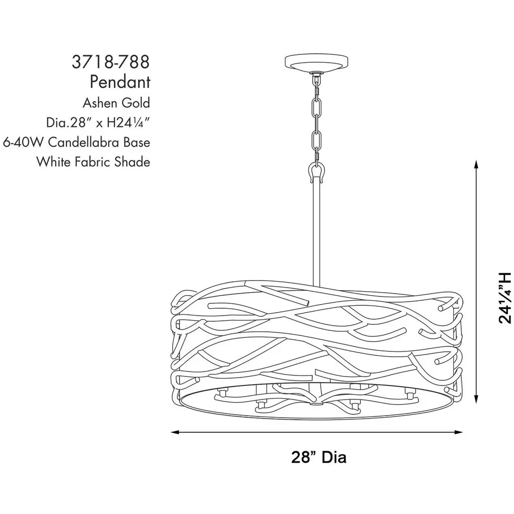 Branch Reality 6 Light 28 Inch Textured Ashen Gold Pendant Ceiling Light