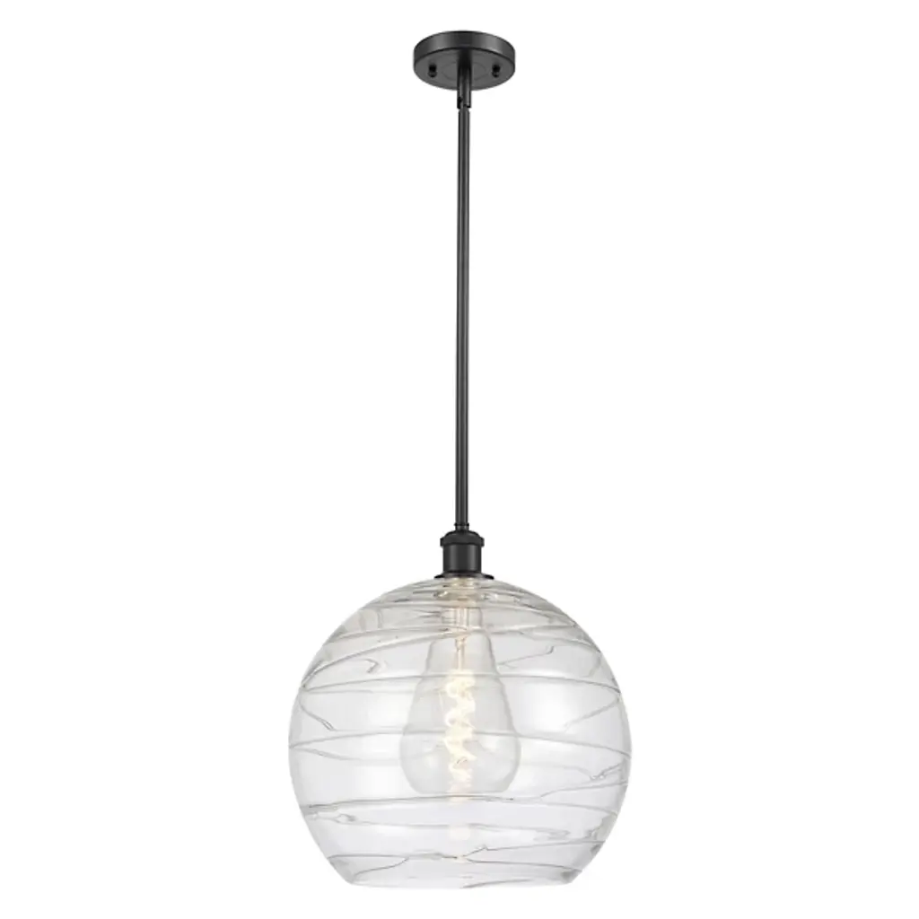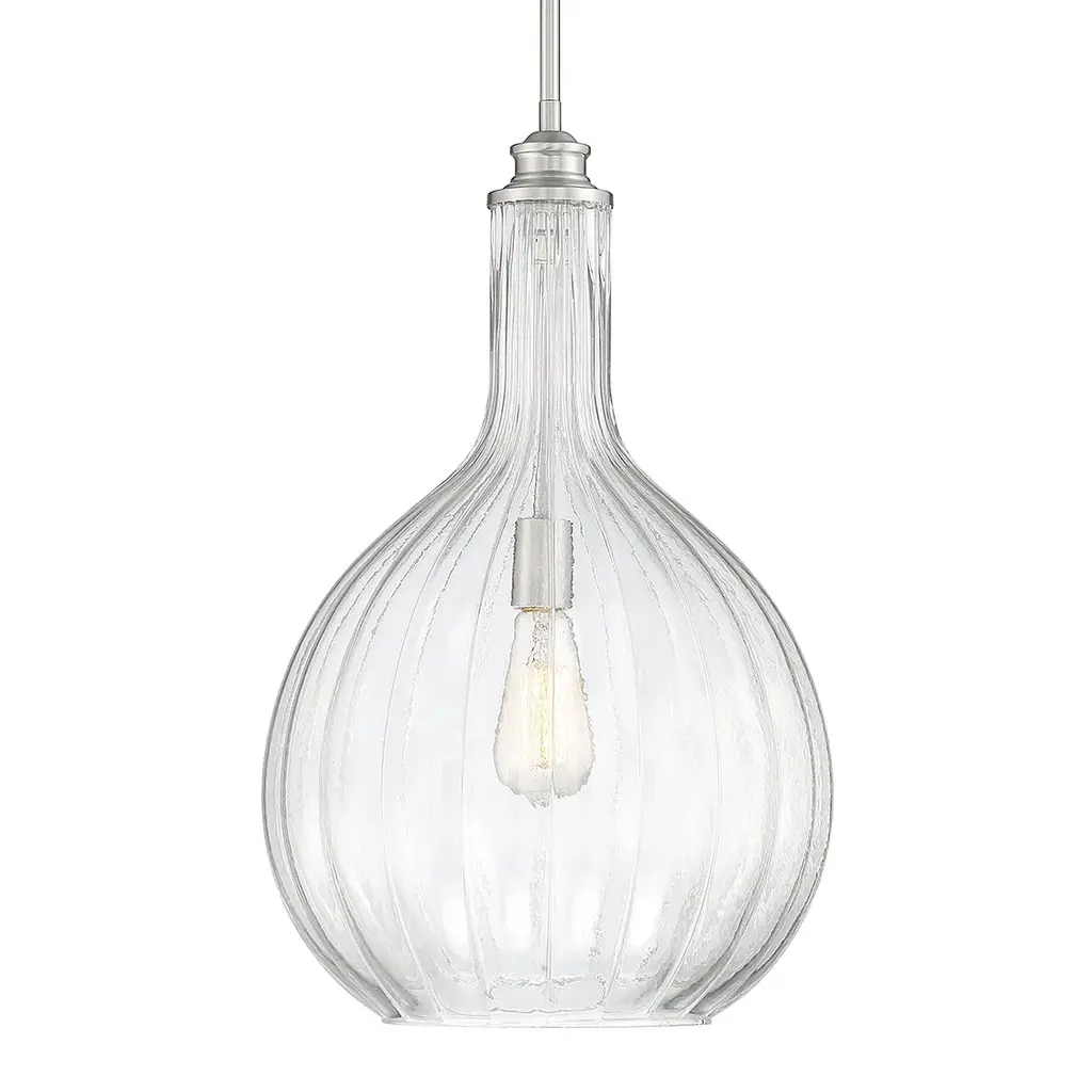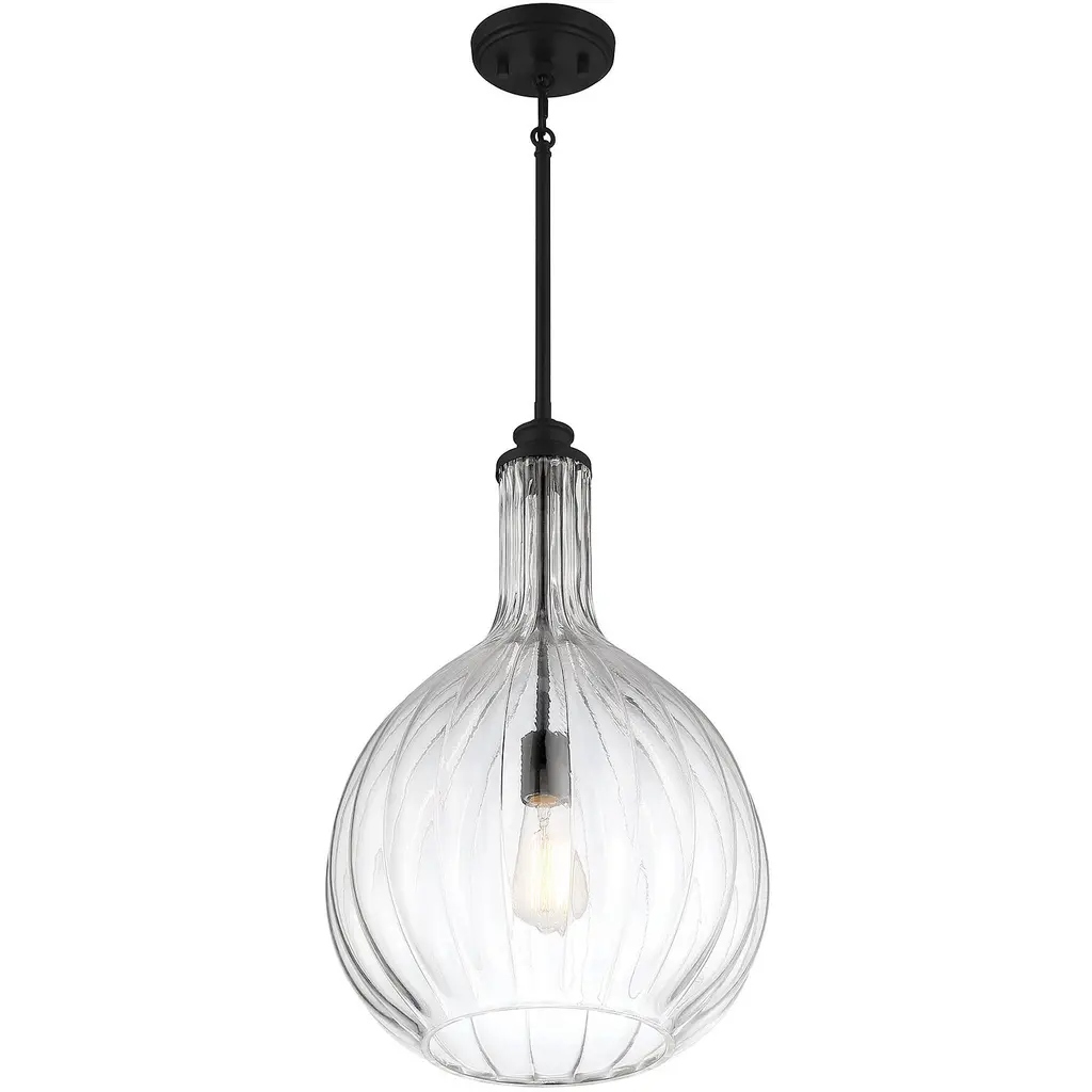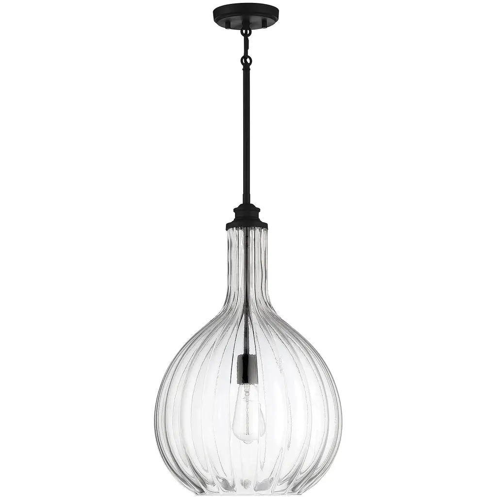 The generously proportioned Brandon collection brings a clean look to any space with a clear, fluted blown glass shade and matte black accents. This one-light pendant has an adjustable height from 28" to 74" and provides illumination from one 60-watt standard size bulb.