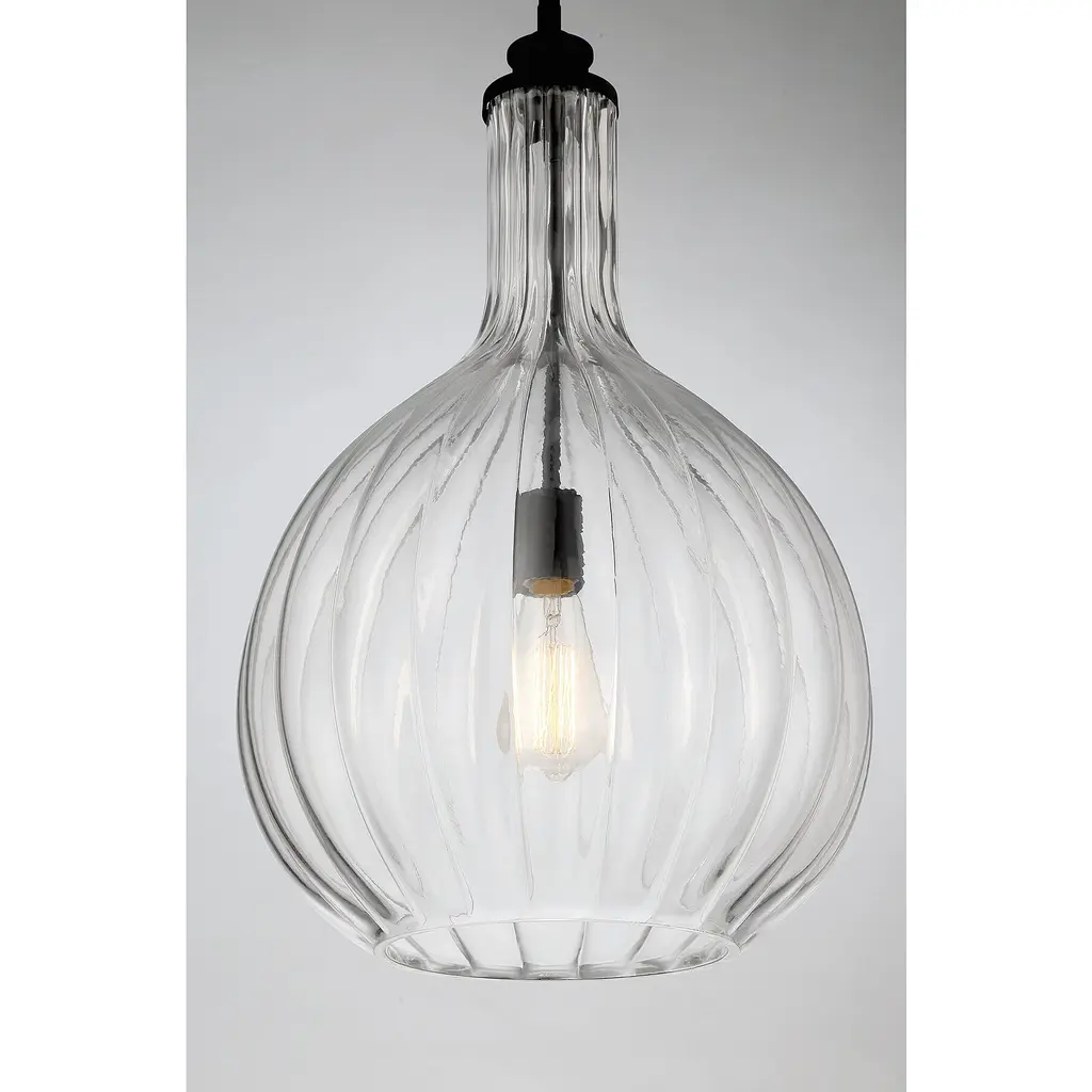 The generously proportioned Brandon collection brings a clean look to any space with a clear, fluted blown glass shade and matte black accents. This one-light pendant has an adjustable height from 28" to 74" and provides illumination from one 60-watt standard size bulb.