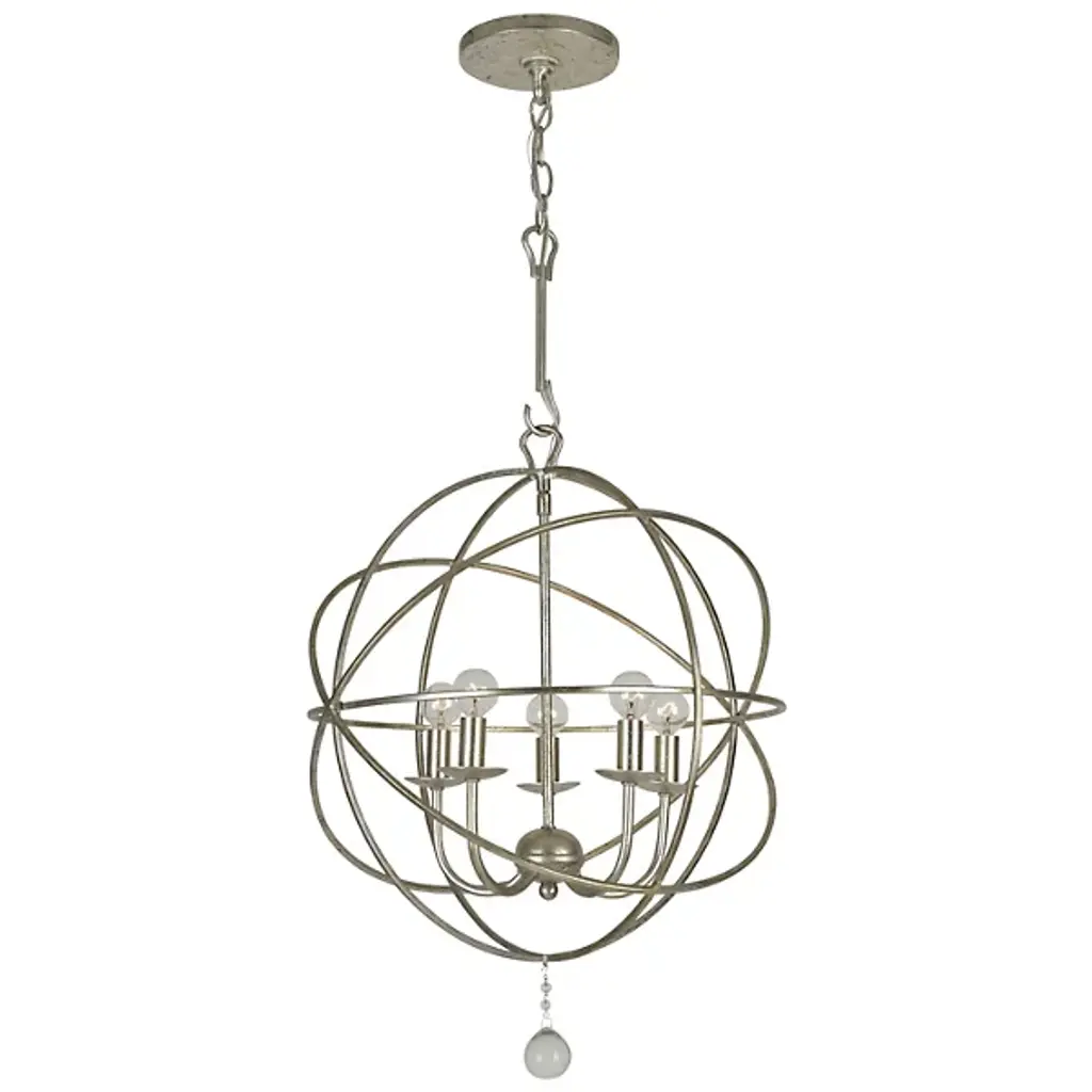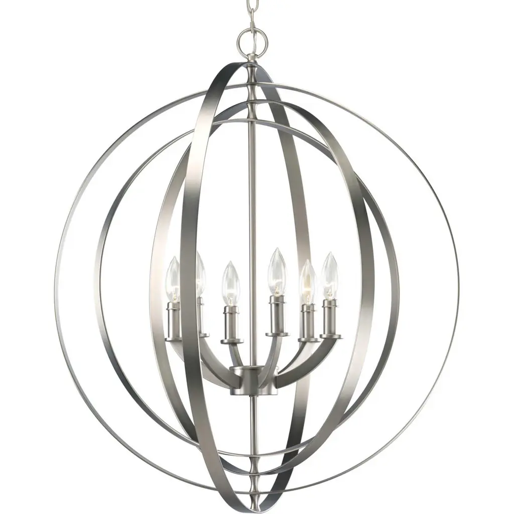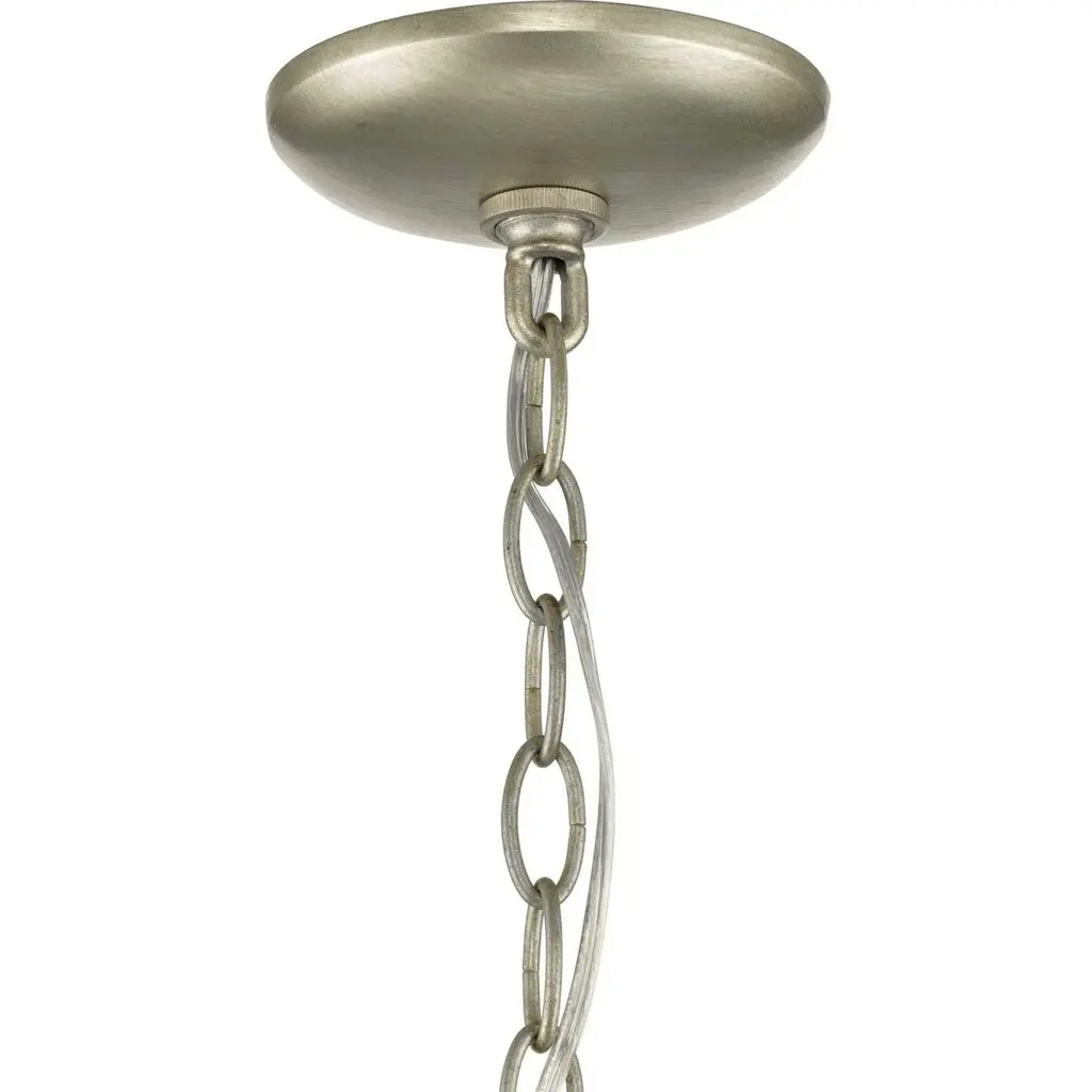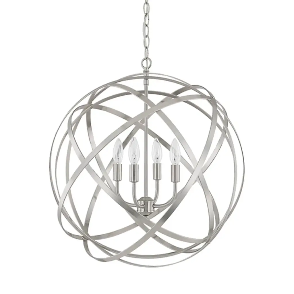 An airy artful pendant, Brandywine’s silhouette features an interlocking sphere with decorative details. The elegant frame highlights a juxtaposition of bold accents and delicate, hand gilded wire accents, finished in a Silver Ridge finish. Capturing a timeless look, this three-light pendant is idea for Farmhouse or Transitional interior settings.