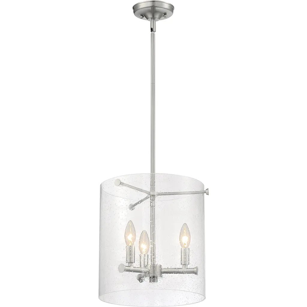 Bransel 3 Light Pendant with Seeded Glass Brushed Nickel Finish