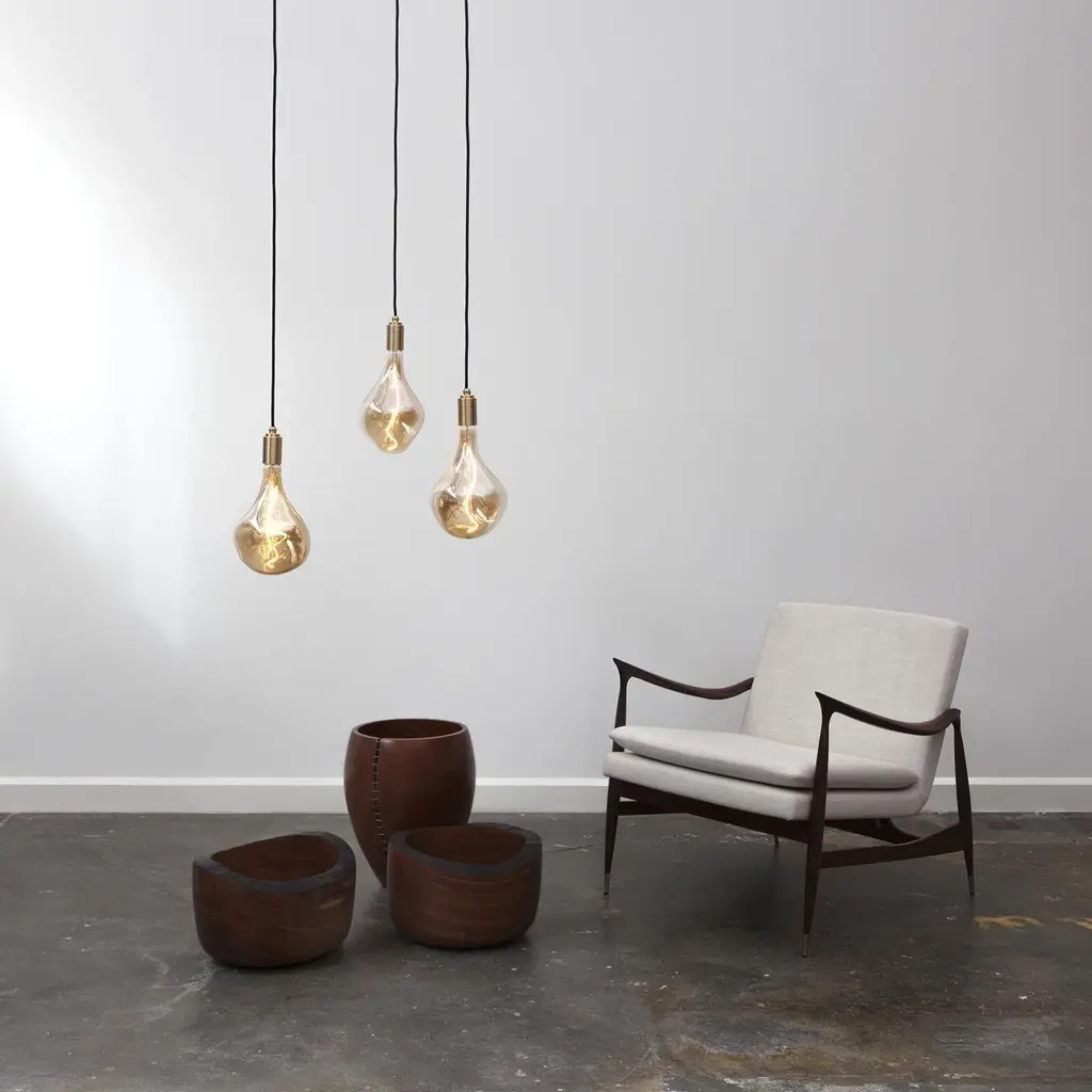 Bringing a warm note to the minimalist canon, Brass Pendant hails from young British design studio Tala. The versatile fixture takes on additional character when paired with one of the studio's varied LED bulbs (also available at A+R). Black threaded cord is crafted with special silicon to help avoid kinking. Striking solo or in a cluster.The team behind Tala, who met at university, not only strive for environmentally conscious design in their products and packaging. Tala's Ten Trees program plants 10 trees for every 200 products sold, in partnership with Heart of England Forest (HoEF) in England and the National Forest Foundation in the United States. And it appears Tala is well on its way to planting 35,000 trees by April 2018!