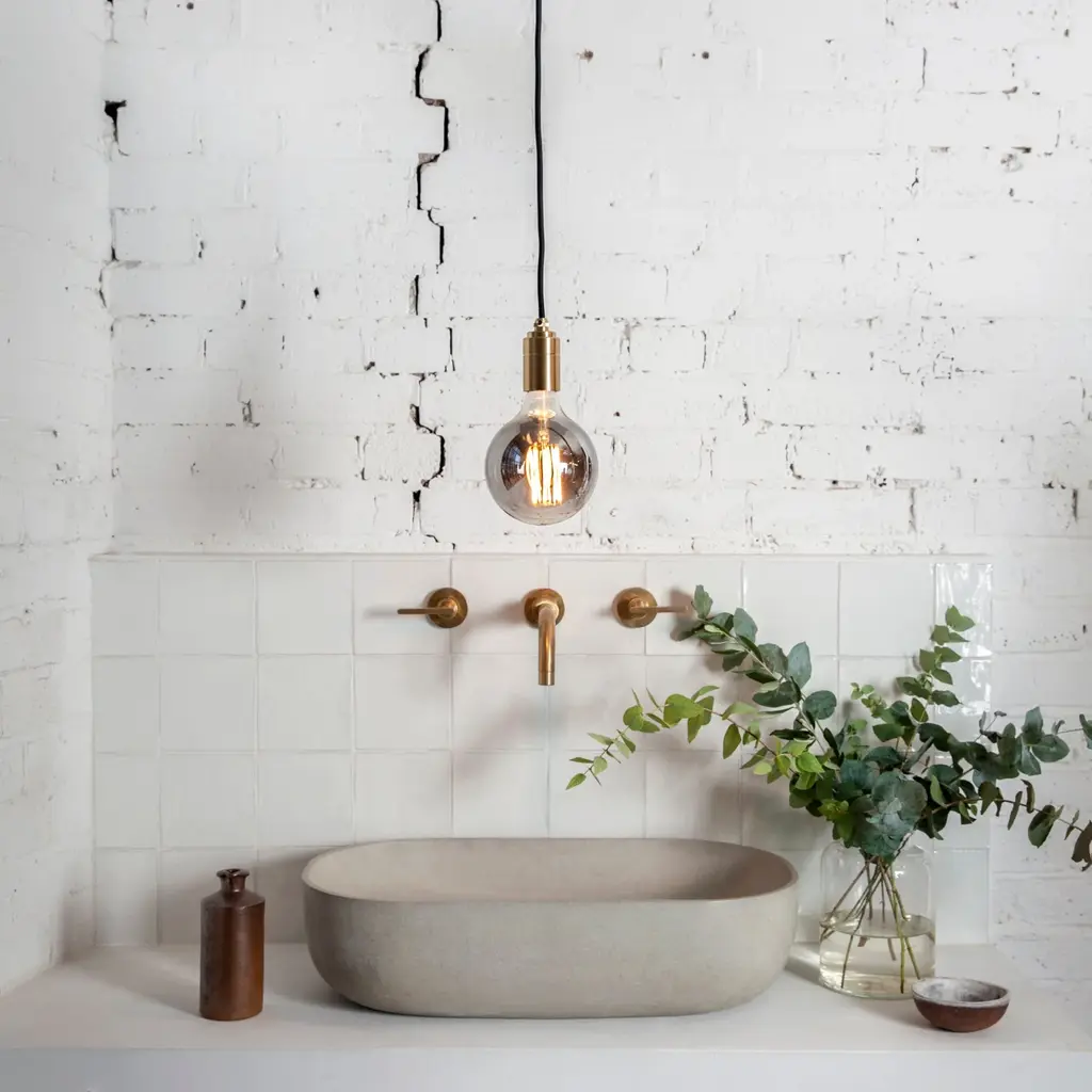 Bringing a warm note to the minimalist canon, Brass Pendant hails from young British design studio Tala. The versatile fixture takes on additional character when paired with one of the studio's varied LED bulbs (also available at A+R). Black threaded cord is crafted with special silicon to help avoid kinking. Striking solo or in a cluster.The team behind Tala, who met at university, not only strive for environmentally conscious design in their products and packaging. Tala's Ten Trees program plants 10 trees for every 200 products sold, in partnership with Heart of England Forest (HoEF) in England and the National Forest Foundation in the United States. And it appears Tala is well on its way to planting 35,000 trees by April 2018!