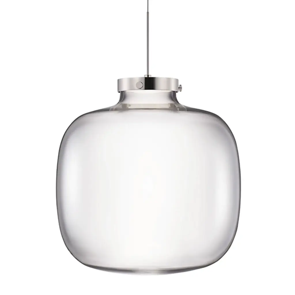 Redefine indoor illumination with the bold, elegant warmth to interiors with the Brava Wide LED Pendant from Niche. A daring design that pushes the boundaries of traditional fabrication and leverages high technology, it uses a slender, low-voltage coaxial cable to suspend a custom LED light source inside a sleek disc housing. Small knobs set around its outer rim hold a rounded diffuser shade of handblown glass in place below the housing, using traditional techniques to moderate the expressive and energy-friendly lamping into an even ambiance that appears to float when illuminated.
