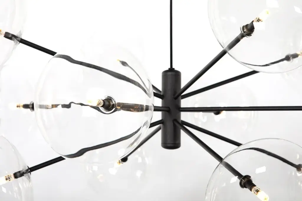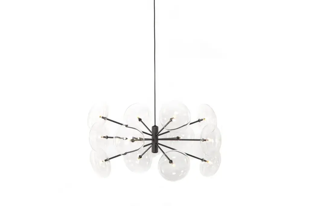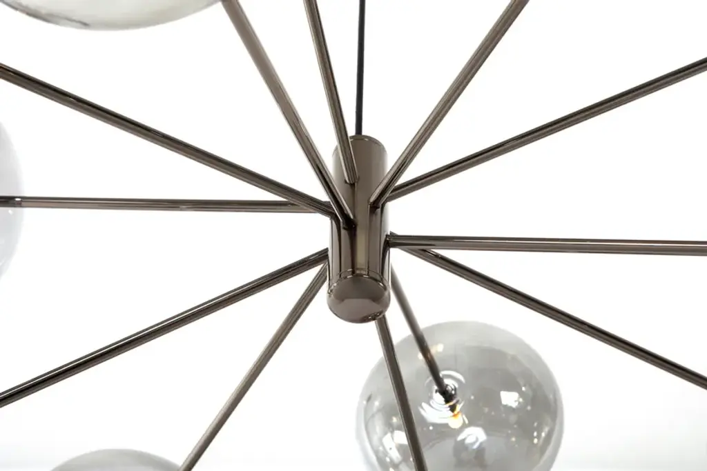 The particular design of the Breath lamp is inspired by a dandelion that scatters its light lightly. It is available in transparent and fumè glass versions, which are combined with black chrome or carbon grey respectively of the metal structure.