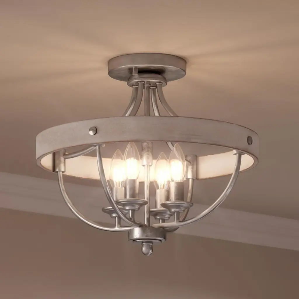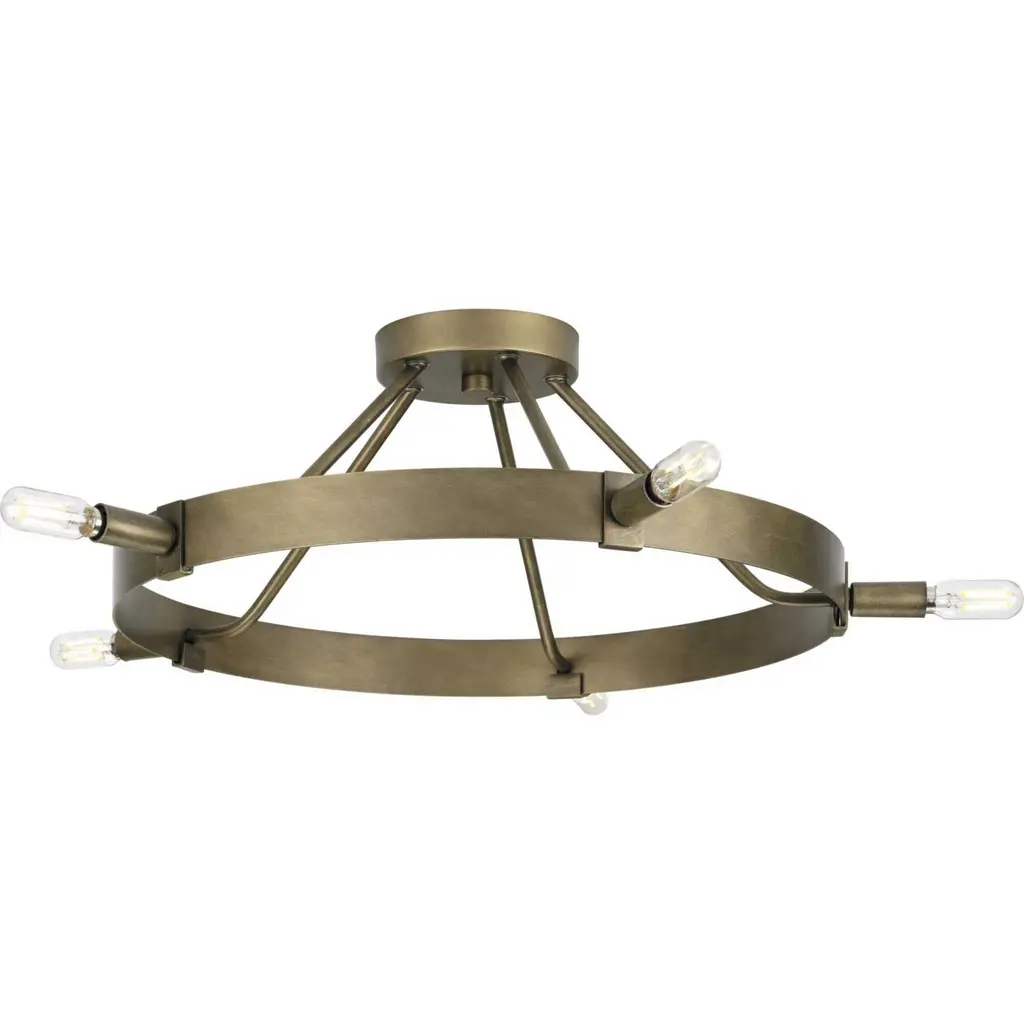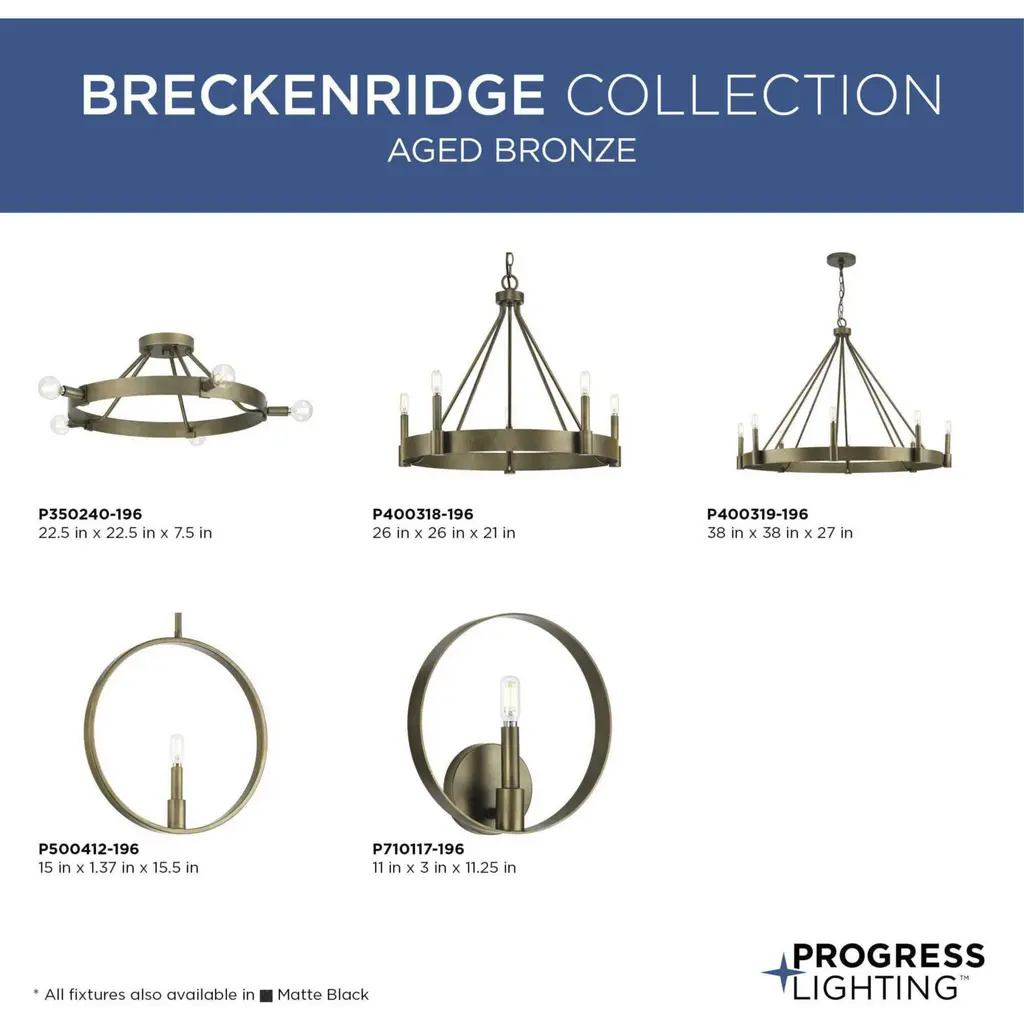 Enhance your interiors with Breckenridge, a rustic yet refined design that presents a statement of minimalist style. Stately candles accent a vast circular frame, illuminating bedrooms, hallways, foyers and living rooms with an inviting glow. Breckenridge is an elegant addition to modern farmhouse and modern craftsman settings. This fixture is part of the Progress Lighting Design Series, a lighting collection offering fashionable styles and affordable luxury lighting for the home.