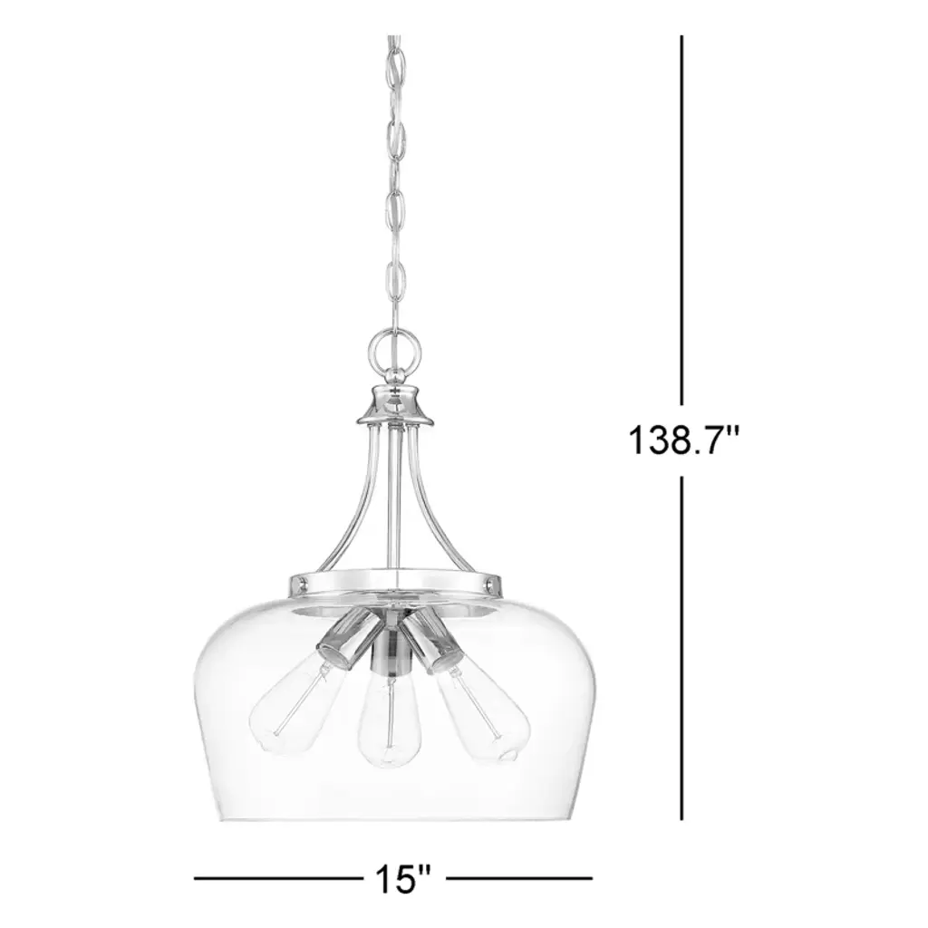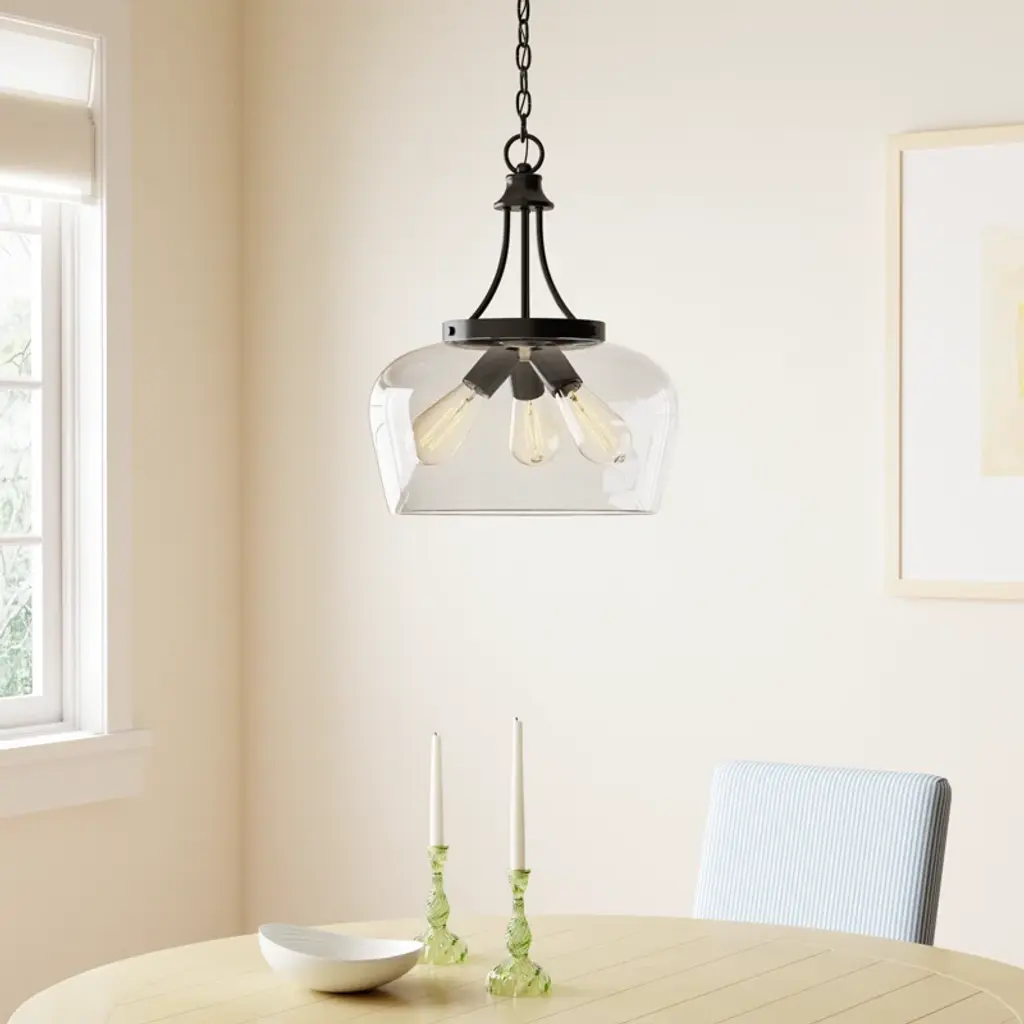 Illuminate your space with traditional farmhouse charm with this statement pendant light. It features a clear dome-shaped glass shade that surrounds three bulbs (sold separately). The fixture is crafted from metal, and it comes in a finish of your choice to suit your desired aesthetic. A height-adjustable chain downrod and a sloped-ceiling adapter are included, so you can set up this luminary anywhere you want.