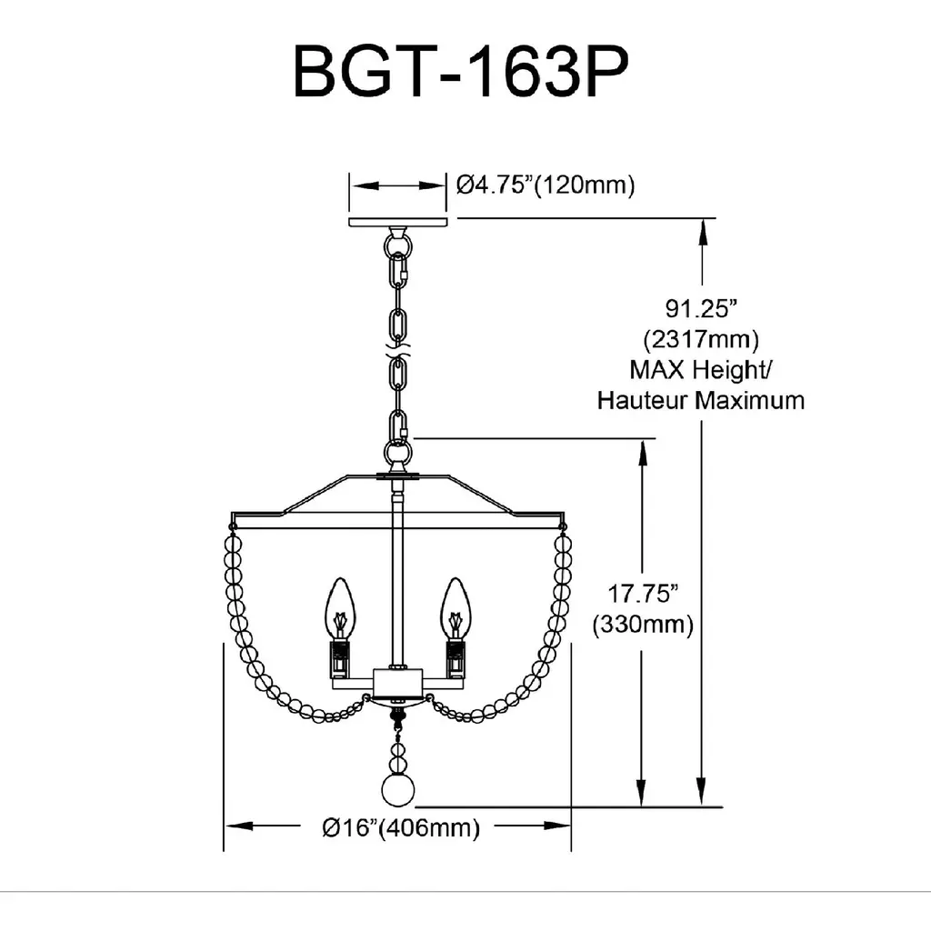Bridget Led 16 Inch Vintage White Pendant Ceiling Light, Beaded