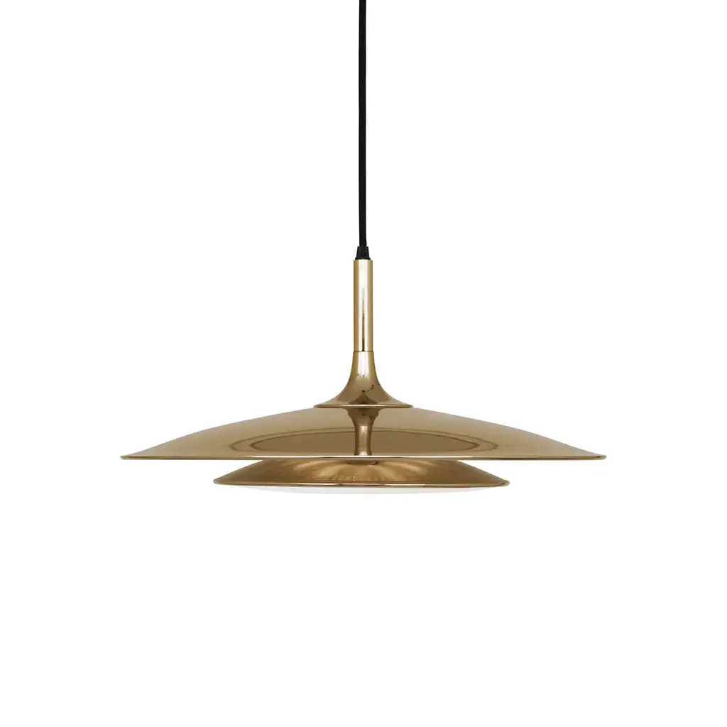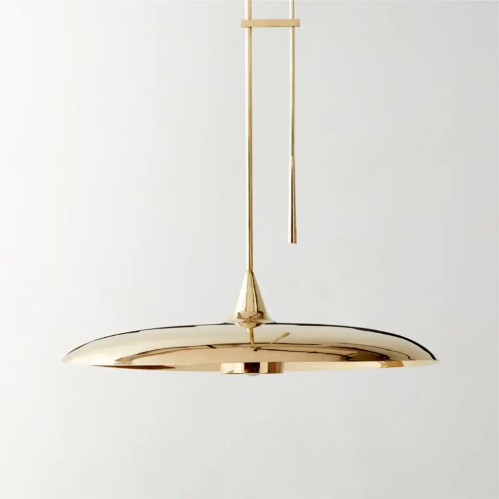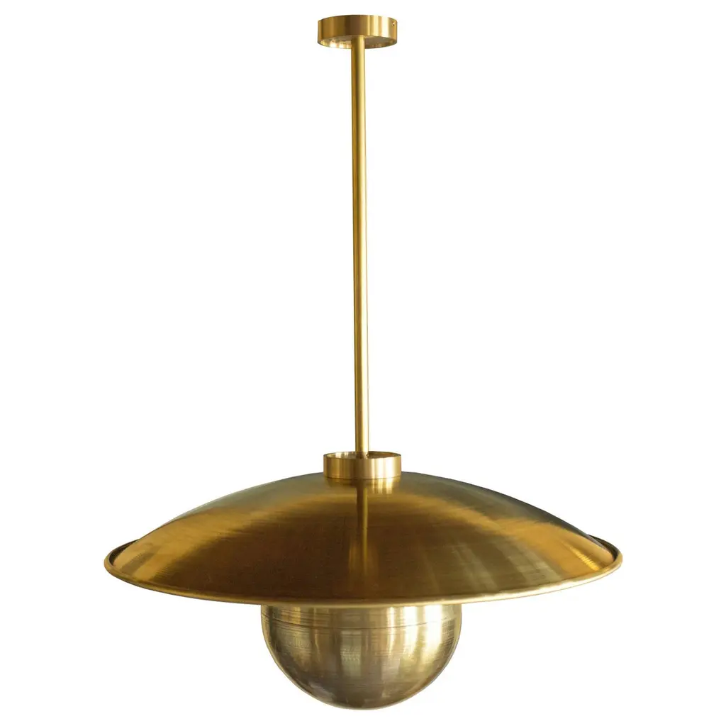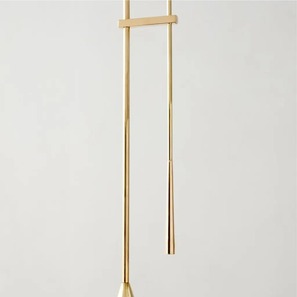 Drawing on Italian modernist influences, counterweight pendant light by Studio Anansi strikes the right aesthetic balance. Slightly oversized shade directs light downward (an especially useful choice for positioning above countertops) while the tapered handle enhances the silhouette. Fabricated from polished unlacquered brass, its finish will develop a beautiful patina over time. CB2 exclusive.Due to the nature of the material, brass patina will vary in color and darken over time.