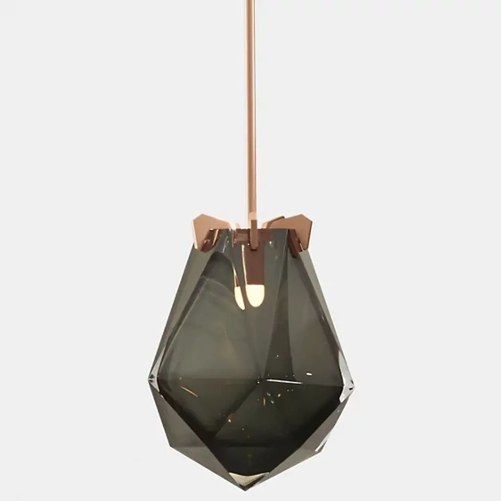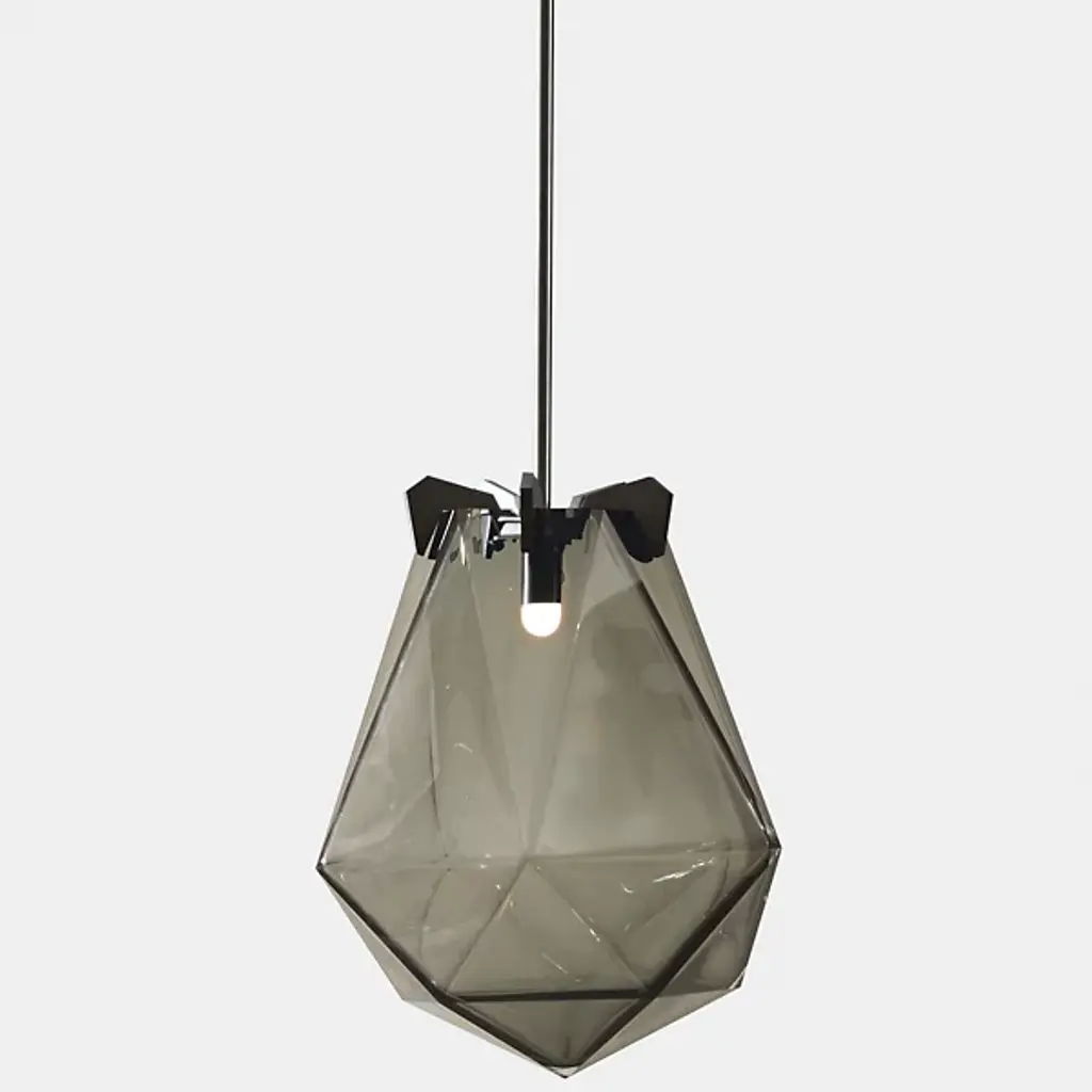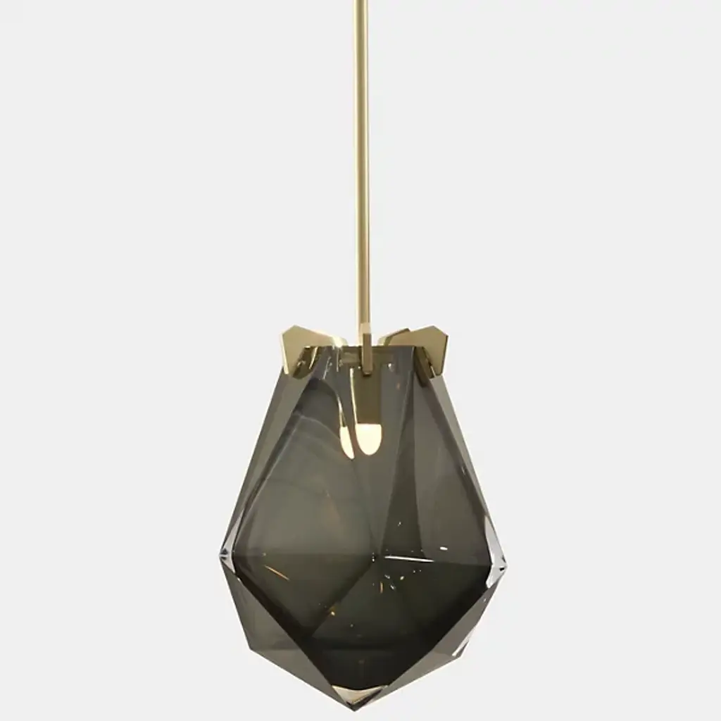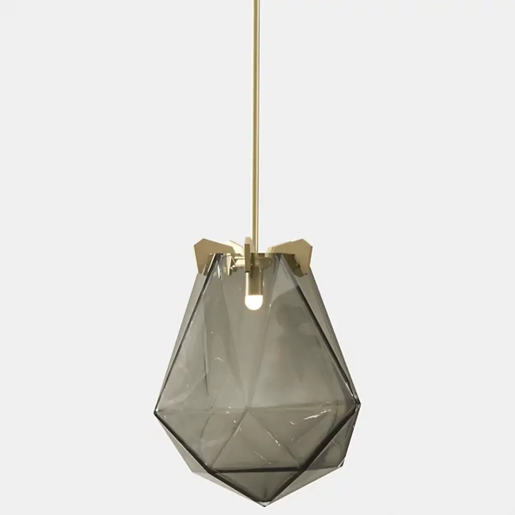 A striking, modern design. The Briolette Pendant from Gabriel Scott features a strong, warm light that gets diffused from the double-blown glass shades. The impressive, prismatic contours are held in the brand’s signature metallic prongs, creating a jewelry-like appearance. The pendant’s dynamic sharp and delicate style draws your eye to the unforgettable and handcrafted shape. Its multifaceted diffuser resembles a precious stone, giving the product an earring or necklace pendant-like look.