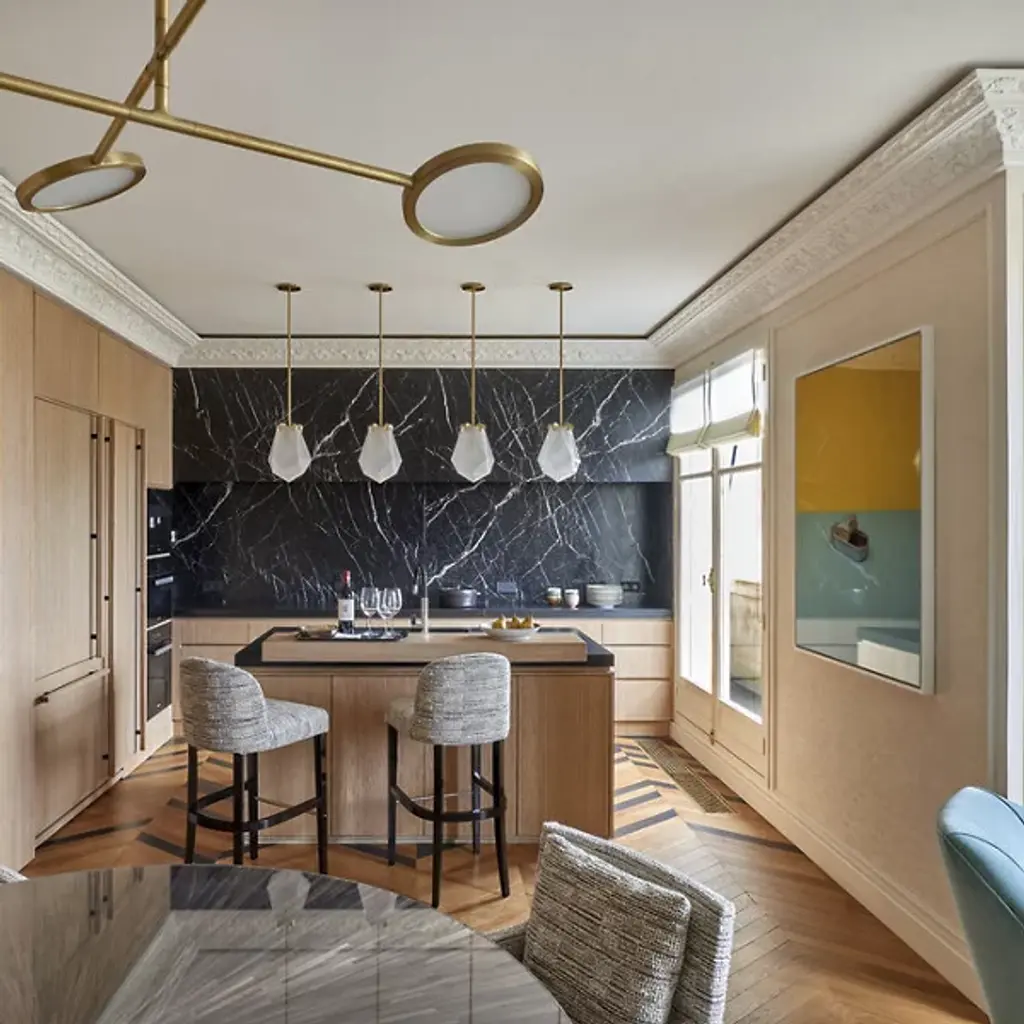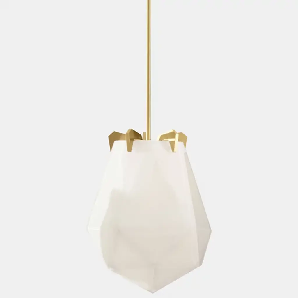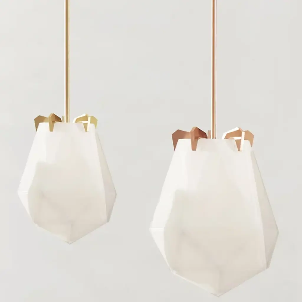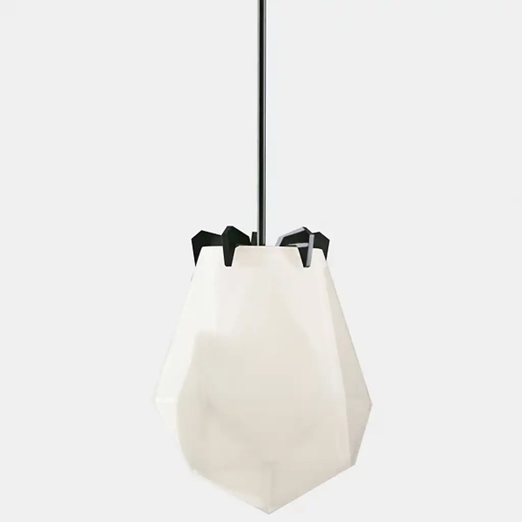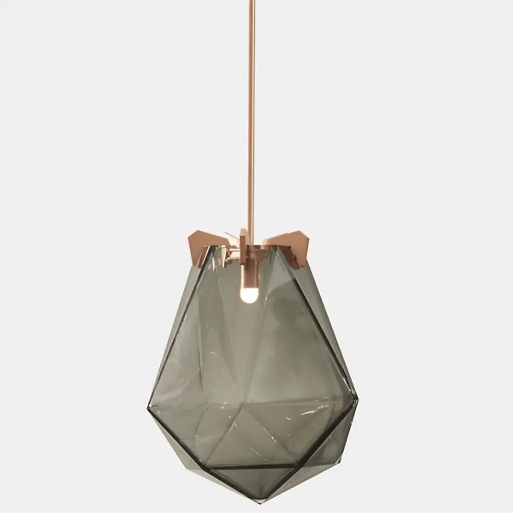 A striking, modern design. The Briolette Pendant from Gabriel Scott features a strong, warm light that gets diffused from the double-blown glass shades. The impressive, prismatic contours are held in the brand’s signature metallic prongs, creating a jewelry-like appearance. The pendant’s dynamic sharp and delicate style draws your eye to the unforgettable and handcrafted shape. Its multifaceted diffuser resembles a precious stone, giving the product an earring or necklace pendant-like look.