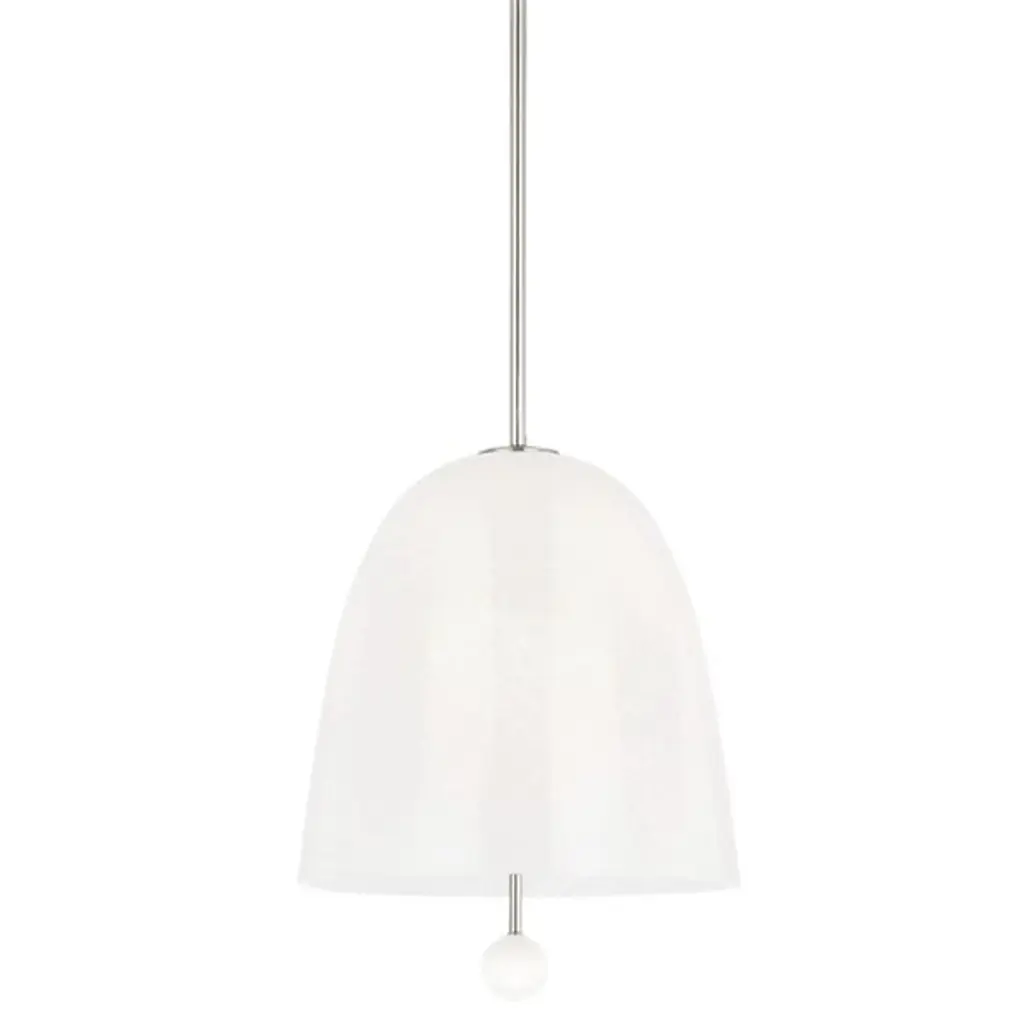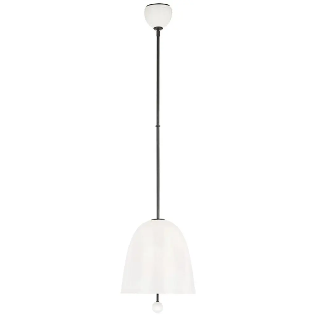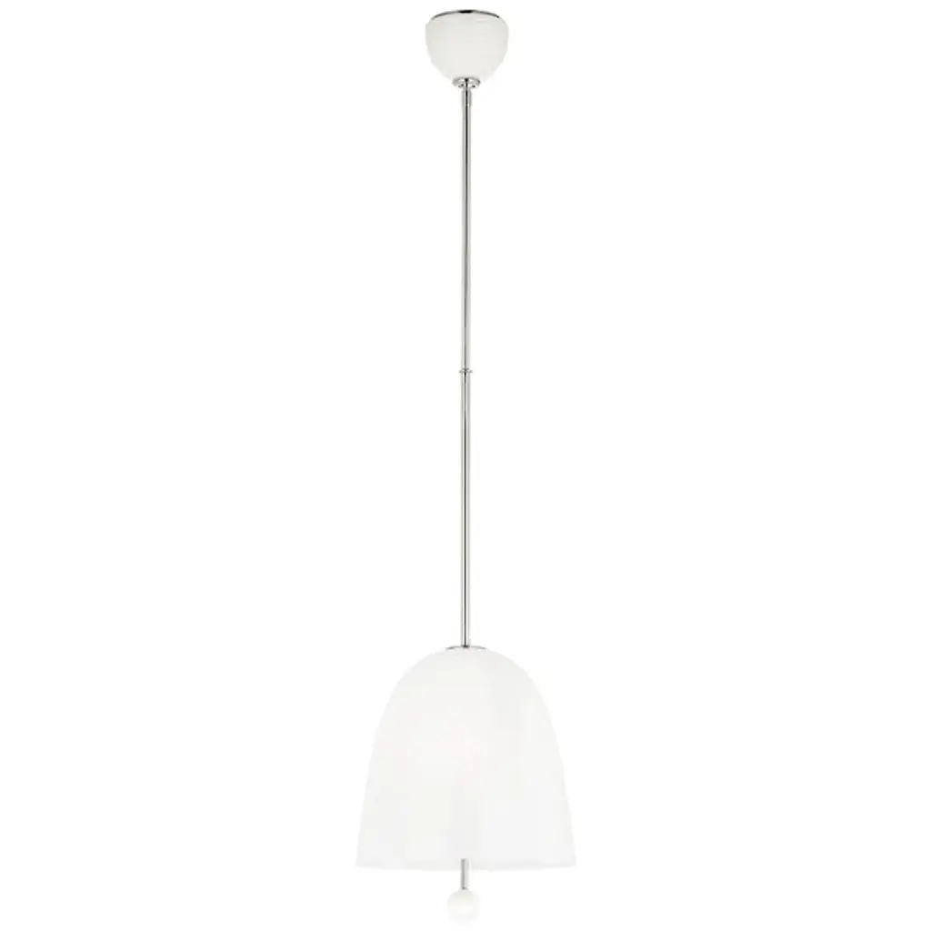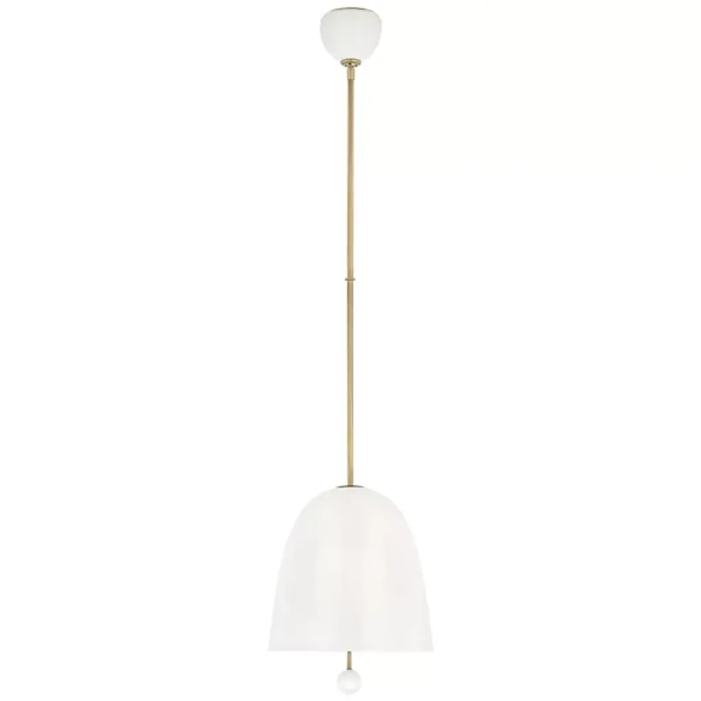 Elevate your space with the Brisa Pendant from Visual Comfort Signature, designed by the renowned AERIN. This simple fixture features luxurious materials, starting with a contoured dome canopy that supports a slender metal stem complemented by a captivating white strie glass dome shade. The damp-listed fixture creates a memorable blend of sophistication and modern charm, offset by a sphere finial below, while the light delivers even warmth accompanied by a focused wash of downlight.