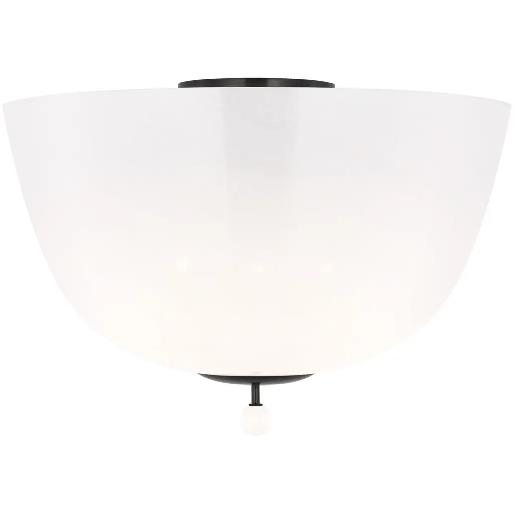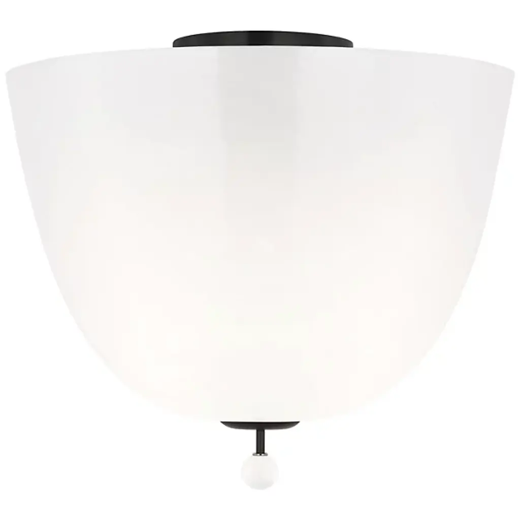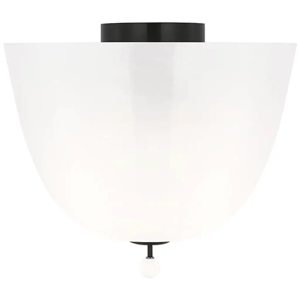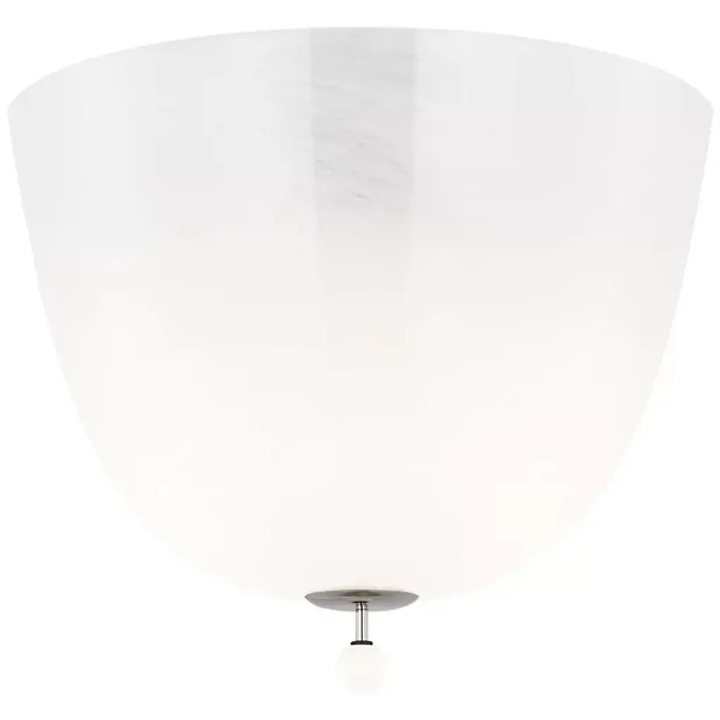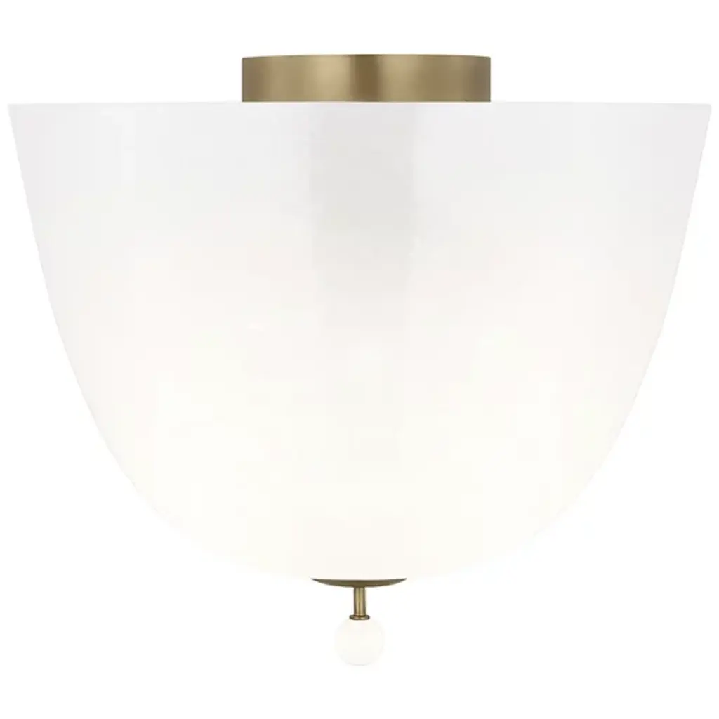 The Brisa Semi-Flushmount from Visual Comfort Signature effortlessly elevates its surroundings with a blend of elegance and modern charm. An AERIN design, this refined fixture features a circle canopy that extends lamping below, beautifully paired with an inverted white strie glass shade. Highlighted by a decorative sphere finial, this damp-listed piece combines sophistication with contemporary style. The luminous shade diffuses a warm, welcoming glow, casting an even, radiant light that transforms and enhances its surroundings.