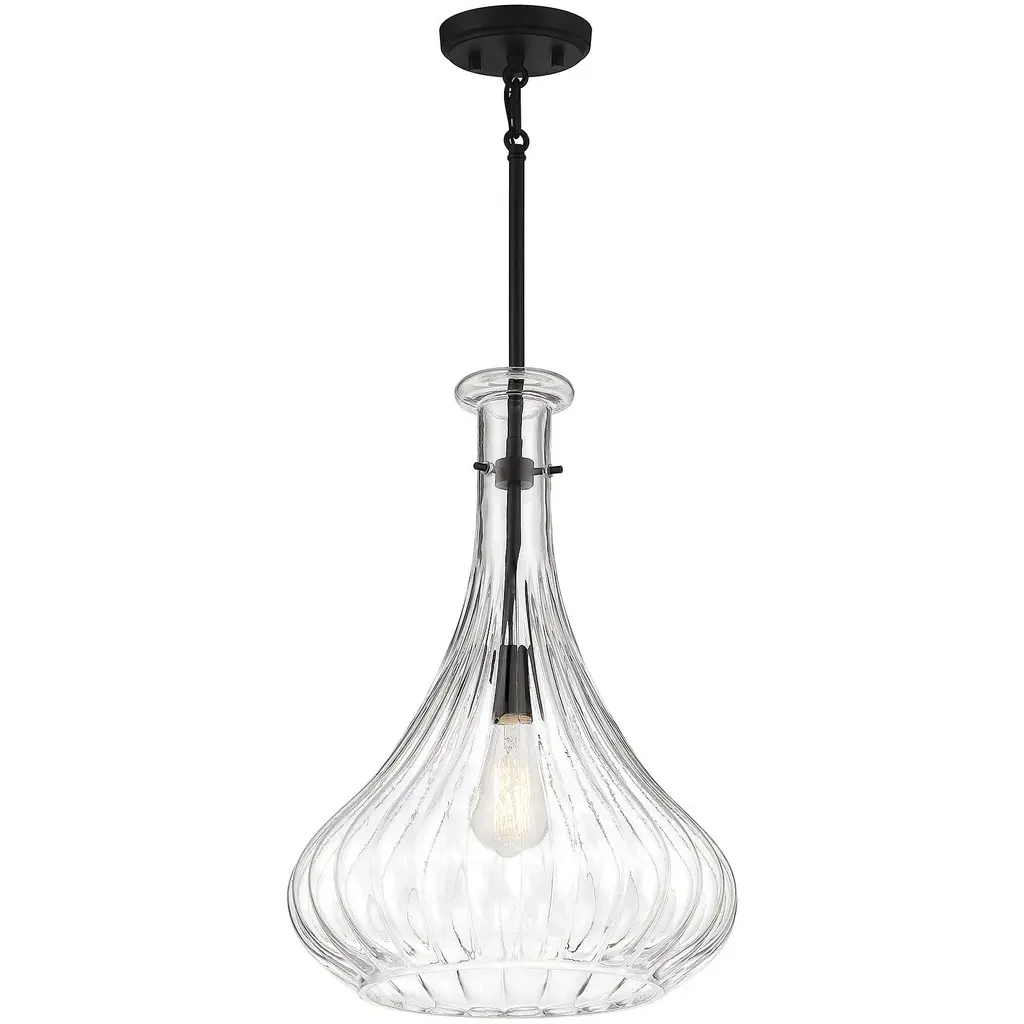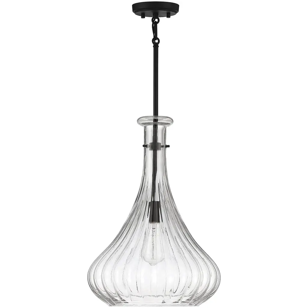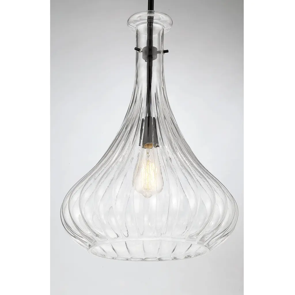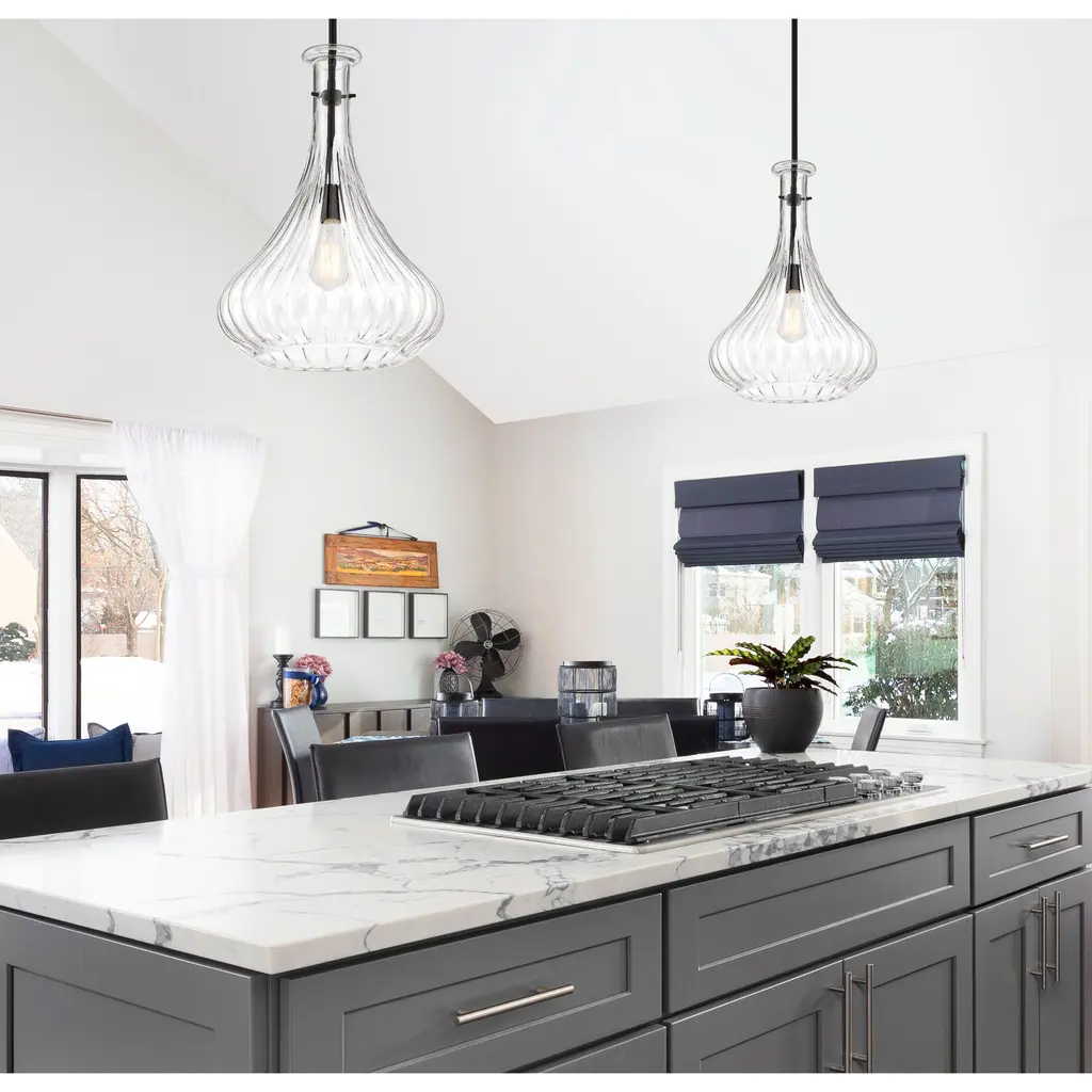 The Bristo collection offers transparent beauty with a fluted shape in clear blown glass and dramatic matte black accents, providing illumination without detracting from other design elements in the room. This one-light pendant has an adjustable height from 26" to 72" and provides illumination from one 60-watt standard size bulb.