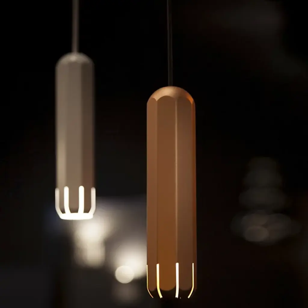 The Brixton LED Mini Pendant by Innermost is a design from James Bartlett that was inspired by the Victorian railway and residential architecture found throughout South London. Resembling the octagonal shape of turrets that appear on buildings throughout this area, this design captures this element within the composition of a sleek, aluminum body. Simply suspended, this pendant focuses a layer of energy-efficient light down onto surroundings and works well as a slender, solo addition to rooms or layered in a configuration of multiples for some more dramatic appeal.