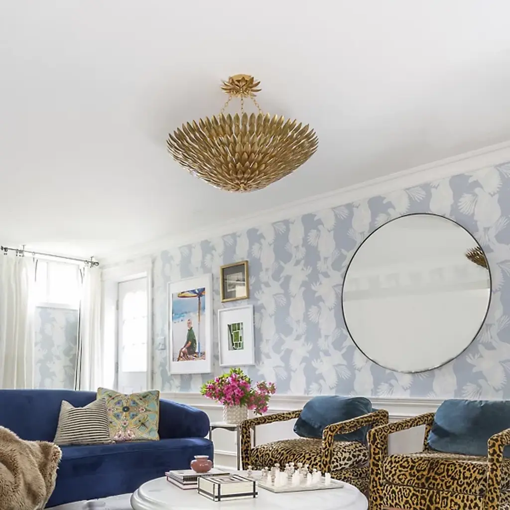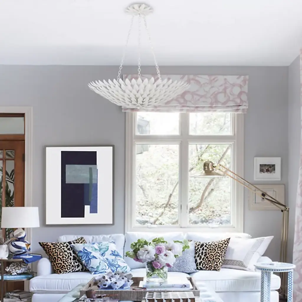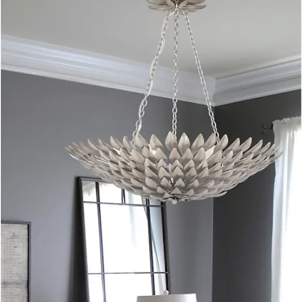 Originally inspired by a brooch found in a French flea market, the Crystorama Broche Pendant shows off a formation of hand painted Wrought Iron leaves wrapped in a metal foil. The multitude of textures combined with the organic leaves greets the eye with plenty of detail to be immersed in, as well as the light source giving a warm glow to the Iron.