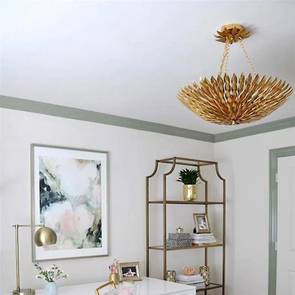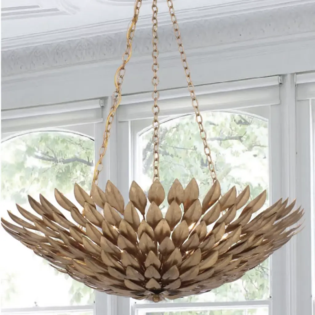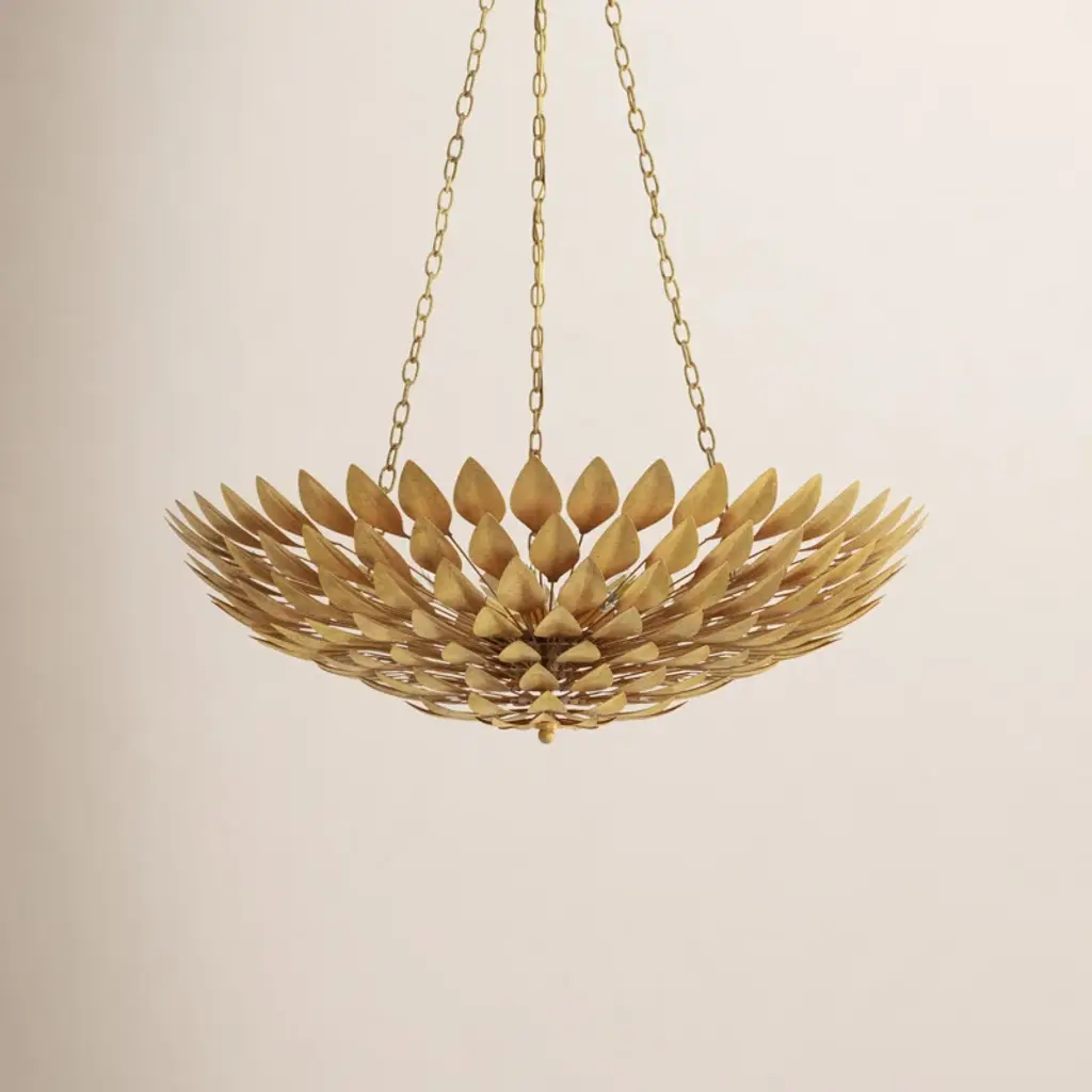 Originally inspired by a brooch found in a French flea market, the Crystorama Broche Pendant shows off a formation of hand painted Wrought Iron leaves wrapped in a metal foil. The multitude of textures combined with the organic leaves greets the eye with plenty of detail to be immersed in, as well as the light source giving a warm glow to the Iron.