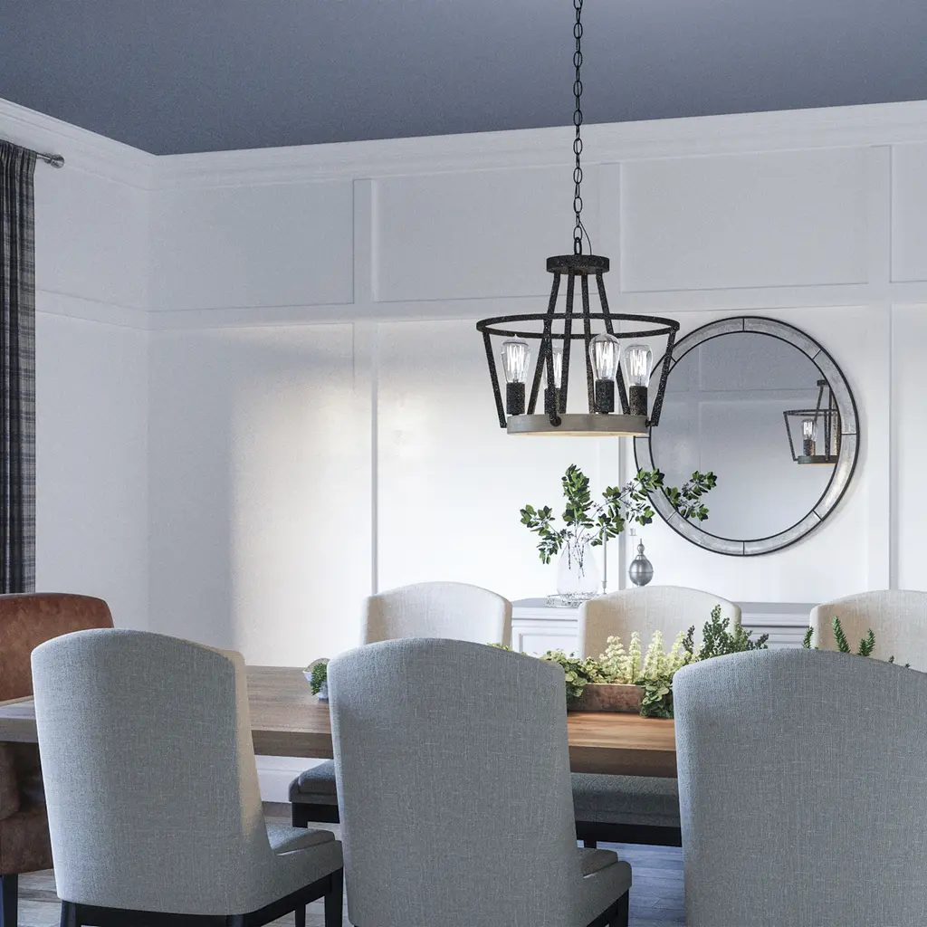 With open framework and weathered styling, the Brockton comes farmhouse-approved. Finished in Brushed Silver or Grey Ash, the thin metal body pairs perfectly with the whitewash finish of the faux wood accents. Vintage filament bulbs provide soft, ambient light in this rustic charmer.
