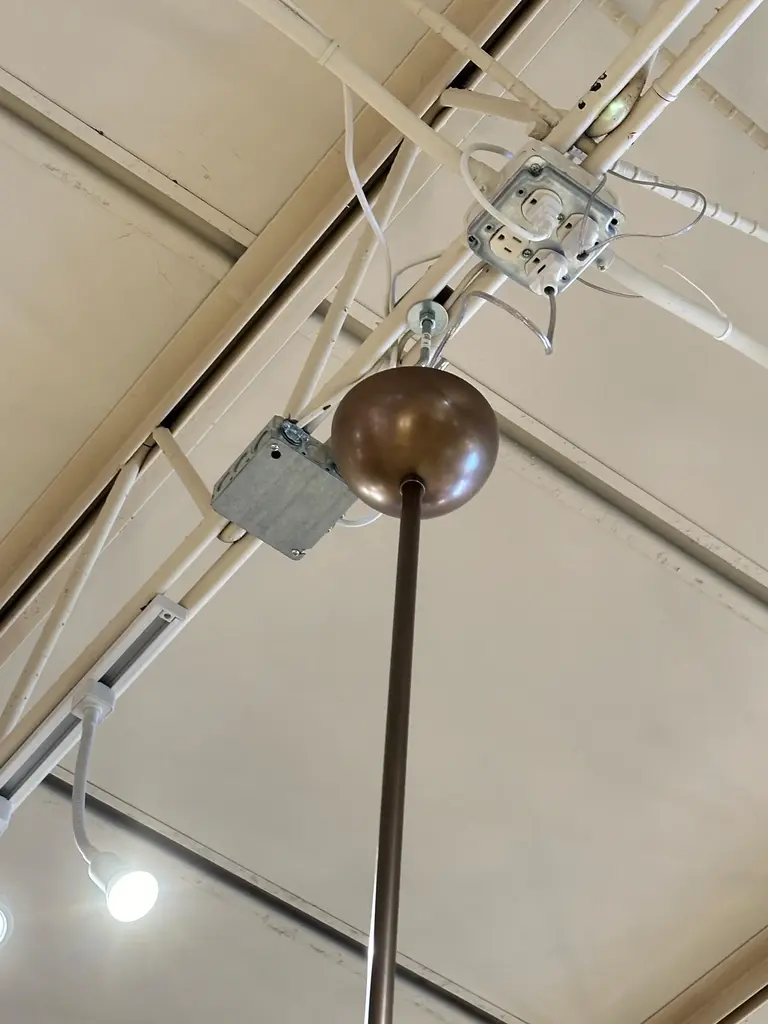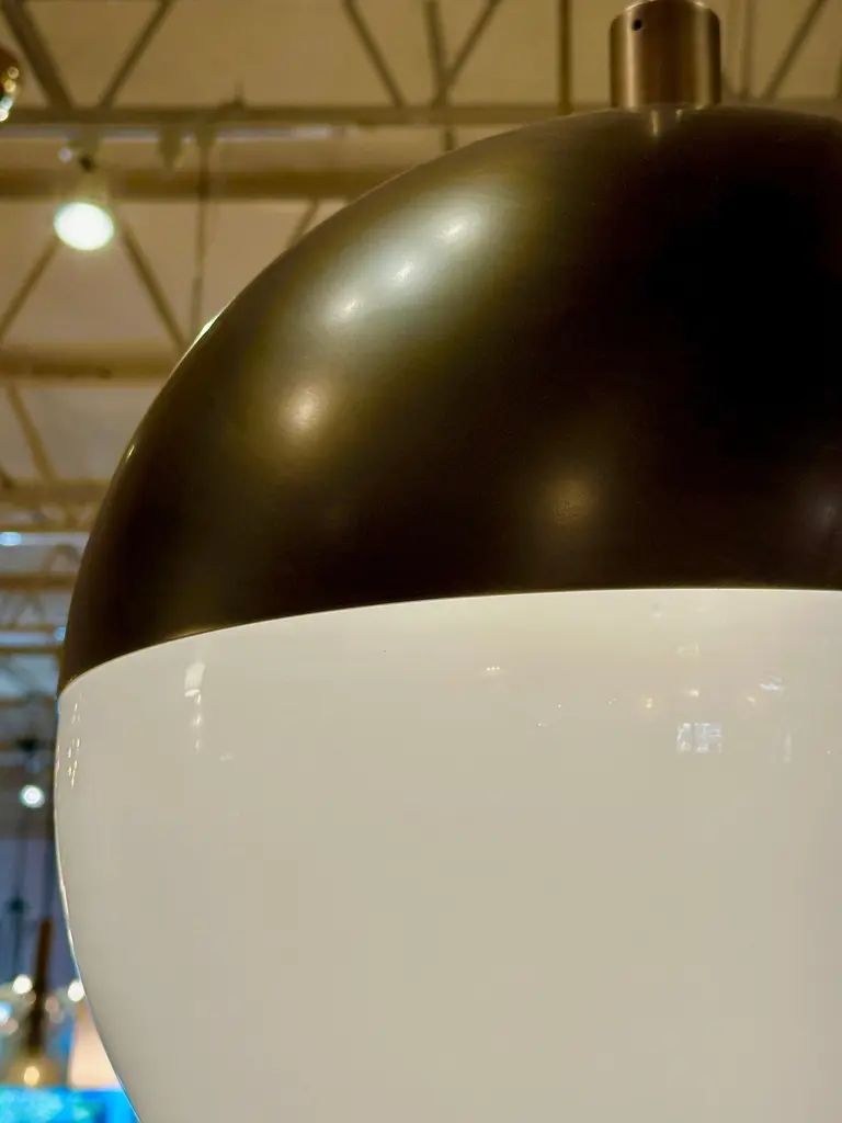 Bronze And White Murano Glass Globe Pendants (Two Available)