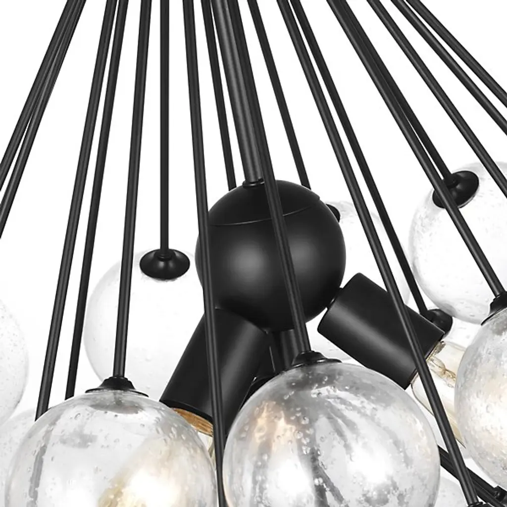 Intricacy and sophistication in one product. The Bronzeville Light Pendant from Visual Comfort Studio, formerly known as Sea Gull Lighting, has a daring design that blends high-end fashion with mid-century modernity. The Steel construction lends it durability, so it can remain functional and visually appealing in your home for many years to come. A series of Seeded Glass globes surround the filament bulbs, creating a warm and ambient glow around bedrooms, kitchens, and dining rooms alike. The bold design ensures this product will make a striking statement in whichever room you install it in.