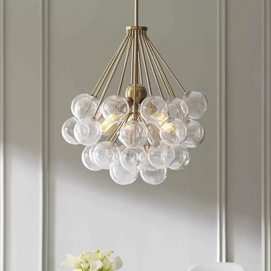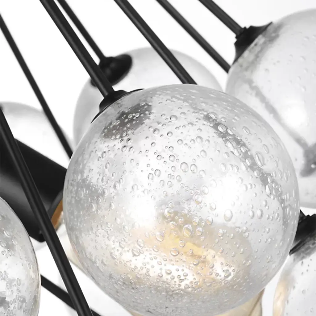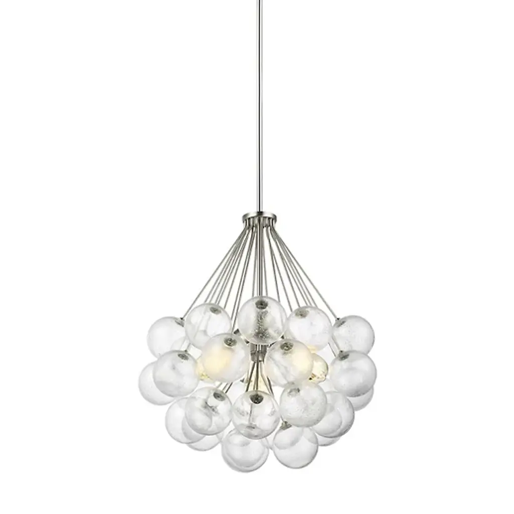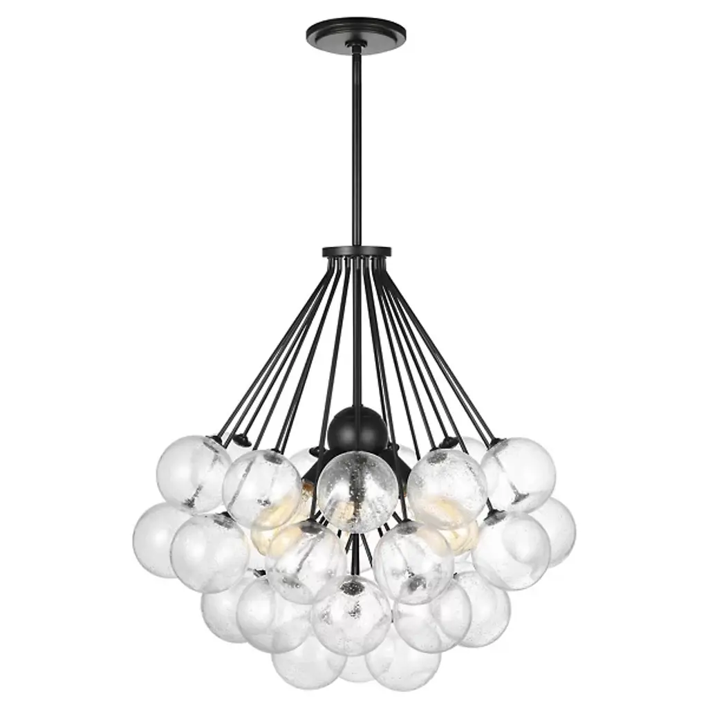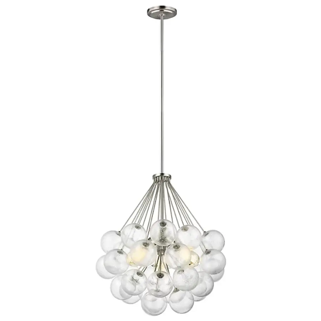 Intricacy and sophistication in one product. The Bronzeville Light Pendant from Visual Comfort Studio, formerly known as Sea Gull Lighting, has a daring design that blends high-end fashion with mid-century modernity. The Steel construction lends it durability, so it can remain functional and visually appealing in your home for many years to come. A series of Seeded Glass globes surround the filament bulbs, creating a warm and ambient glow around bedrooms, kitchens, and dining rooms alike. The bold design ensures this product will make a striking statement in whichever room you install it in.