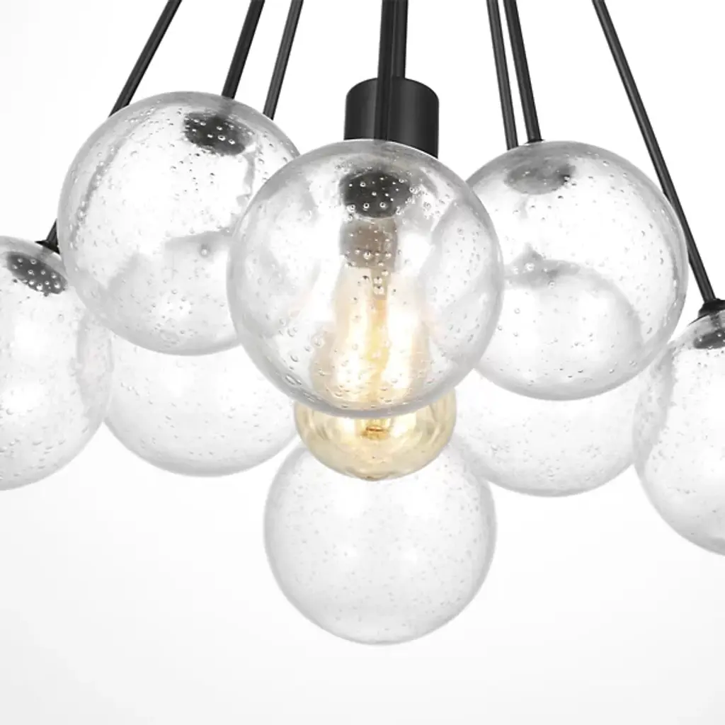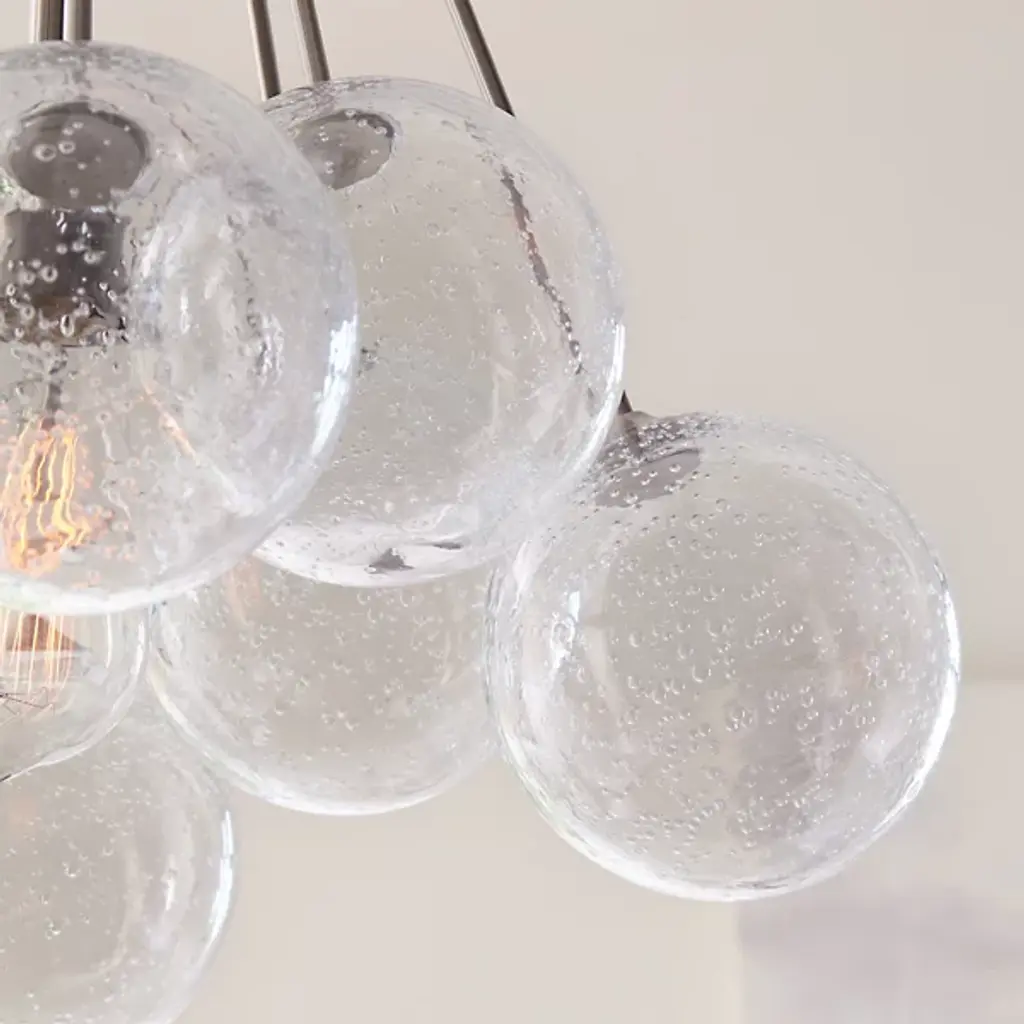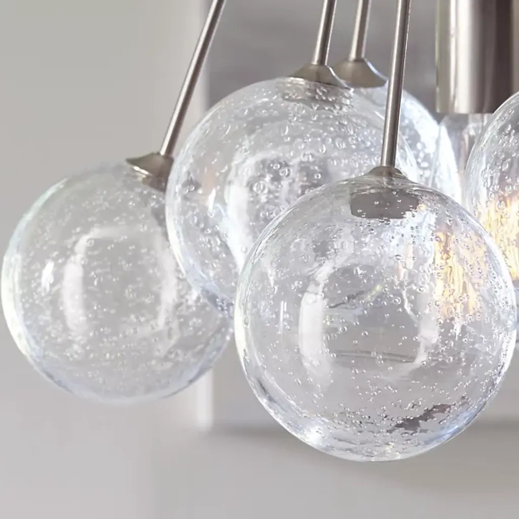 The Bronzeville Small Pendant by Visual Comfort Studio, formerly known as Sea Gull Lighting, is an elegant, mid-century option for your lighting needs. A series of handblown, translucent glass orbs hang from solid metal rods, combining into a singular, sturdy downrod. The orbs encase filament lights, which send out warm and stylish direct lighting. Rated for damp locations and able to be mounted on flat or slanted ceilings, the Bronzeville Pendant is a versatile option for focused lighting in your living spaces.