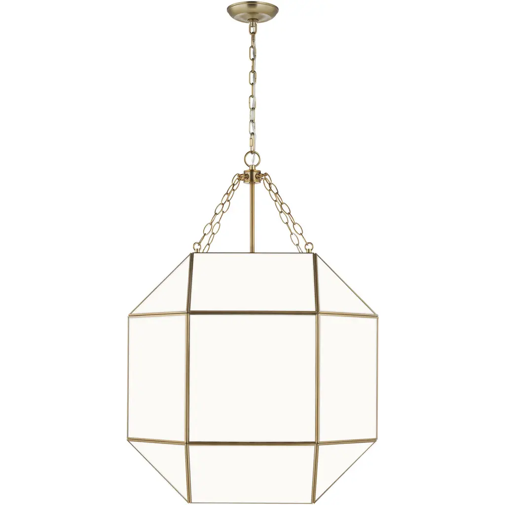 The Brookfield Pendant from Hudson Valley Lighting transforms the traditional lantern into a captivating blend of contemporary flair and nostalgic charm. Exploring shapes, angles, and negative space brings new life into the design. The exquisite diamond-shaped framework, crafted with clean lines, encases clear glass panels. Delicate chainwork adds a touch of sophistication akin to fine jewelry. This pendant radiates an undeniable allure, making it an exceptional centerpiece that leaves a lasting impression.