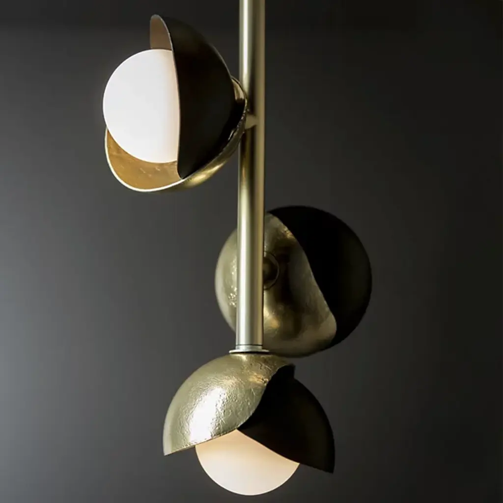 A unique way to help modern décor bloom. The Brooklyn Multi-Light Pendant by Hubbardton Forge projects light in all directions via 4 glass spheres arranged vertically along a slim metal stem. Forged steel “petals” curve protectively around each shade and can be rotated to produce just the right look. On either side of a bed or a vanity mirror, or over a kitchen island or dining table, this vertical pendant emphasizes the height of taller spaces while also warmly illuminating them.