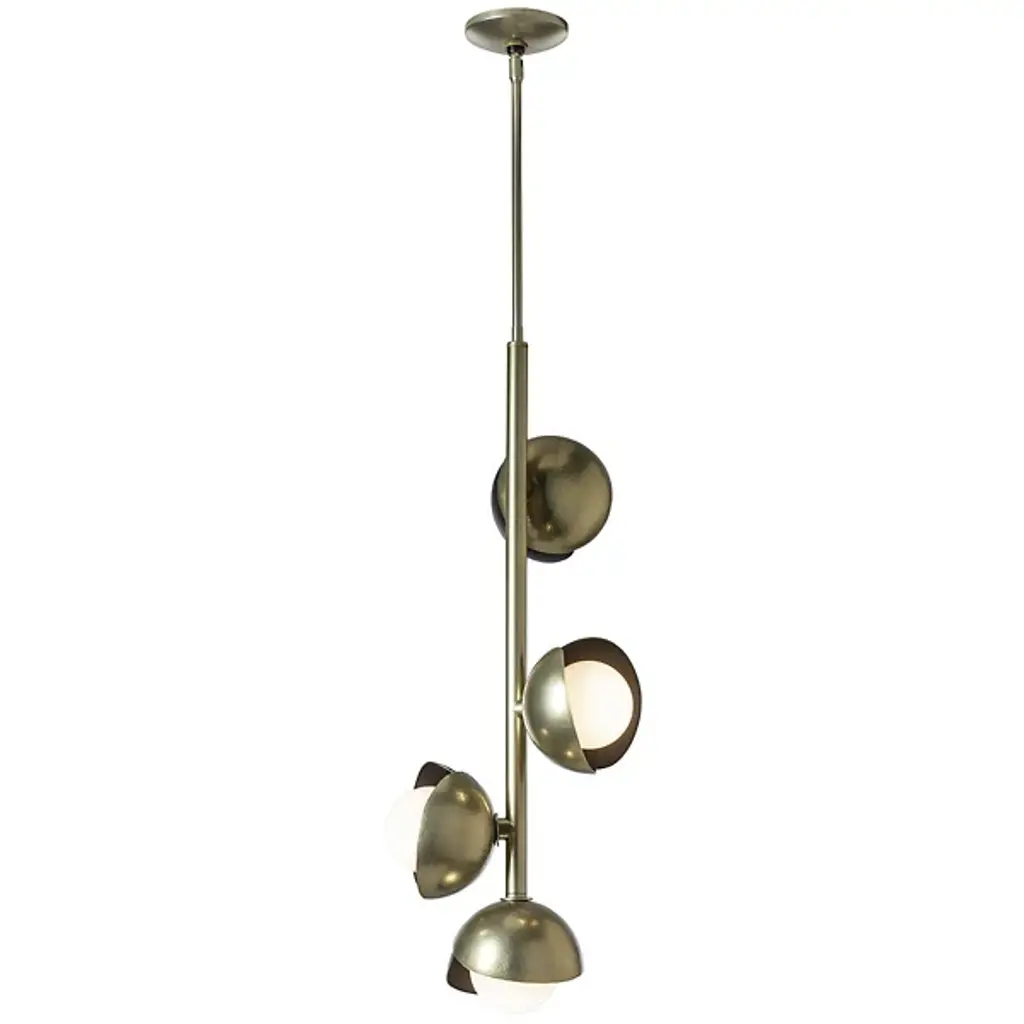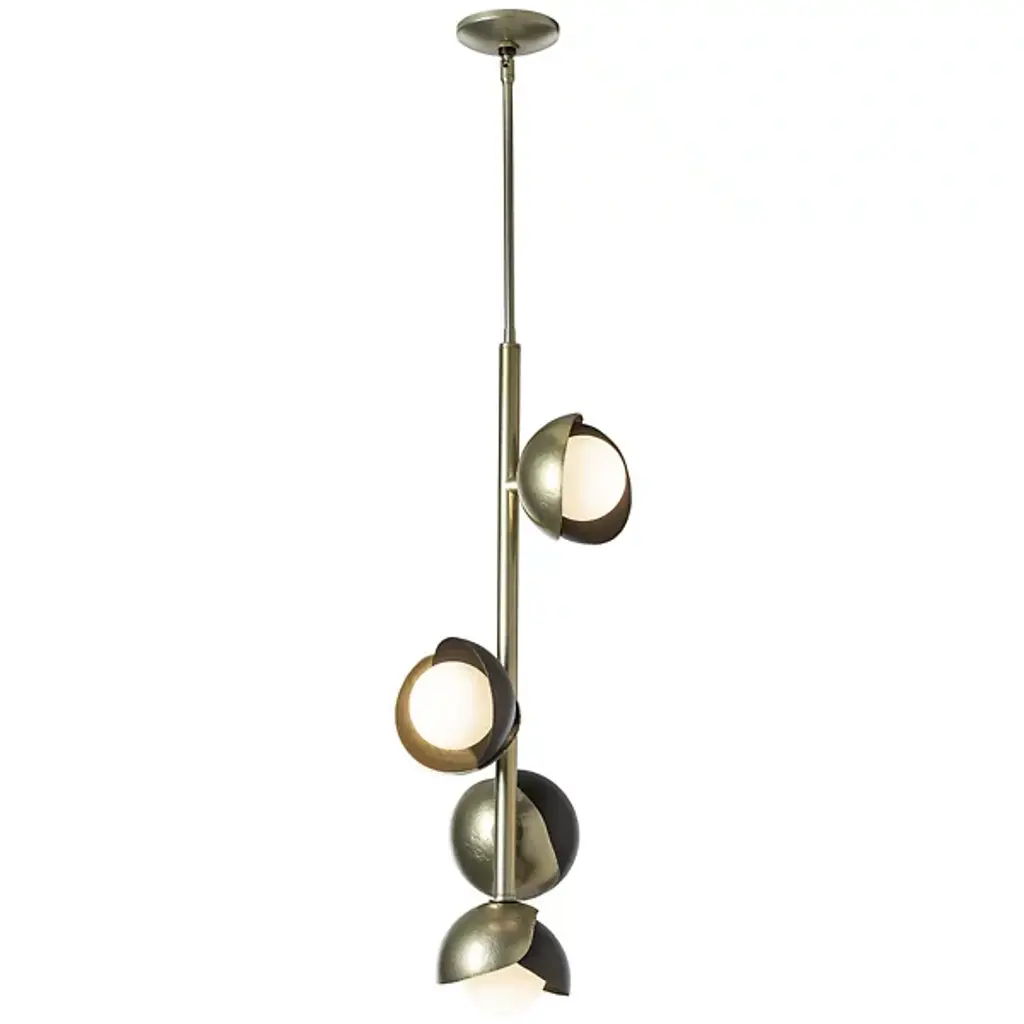 A unique way to help modern décor bloom. The Brooklyn Multi-Light Pendant by Hubbardton Forge projects light in all directions via 4 glass spheres arranged vertically along a slim metal stem. Forged steel “petals” curve protectively around each shade and can be rotated to produce just the right look. On either side of a bed or a vanity mirror, or over a kitchen island or dining table, this vertical pendant emphasizes the height of taller spaces while also warmly illuminating them.
